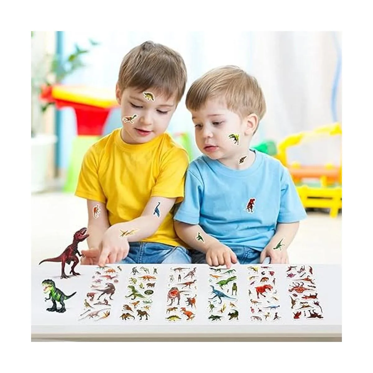 Gran regalo para niños Nuestras pequeñas calcomanías de dinosaurio son una bolsa de regalo perfecta para niños y niñas, también se pueden utilizar como regalo de entrenamiento para niños o caja de regalo de San Valentín. Atención: las calcomanías no son aplicables a superficies rugosas e irregulares.