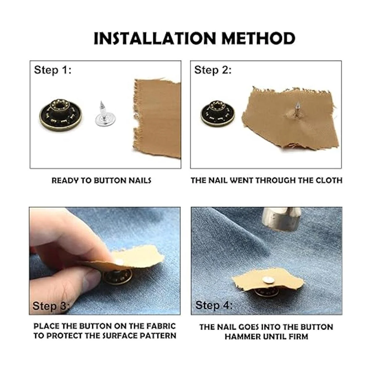 Lo que obtienes: 1 instrucciones idioma español no garantizado, 20 botones de mezclilla, 20 remaches, 1 caja de almacenamiento, 7/24 servicio al cliente cálido para ayudarte por correo electrónico