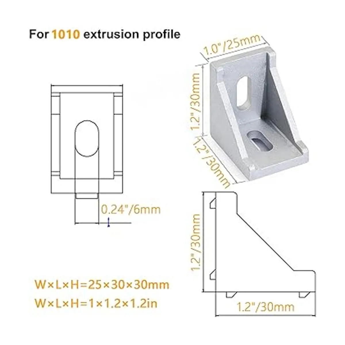 Tamaño: 0.945 x 1.181 x 1.181 in. El juego de conectores de aluminio extruido se utiliza para conectar piezas de extrusión de aluminio de 1 pulgada en un ángulo de 90 grados
