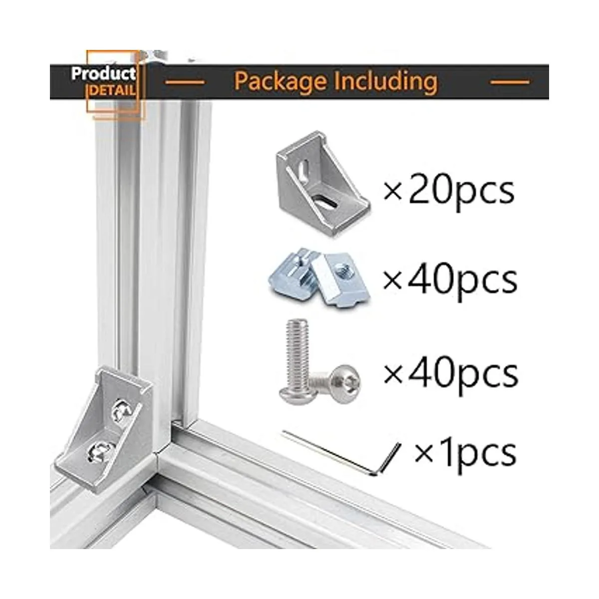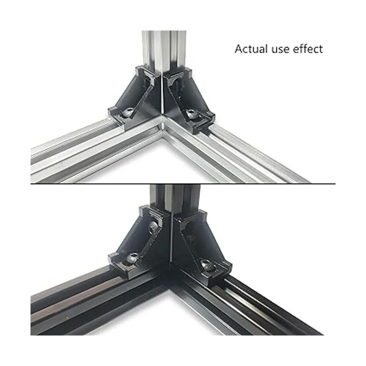 Material: soporte de esquina: aluminio. Los tornillos hexagonales están hechos de acero al carbono de alta calidad, resistente a la corrosión y no se deforma fácilmente.