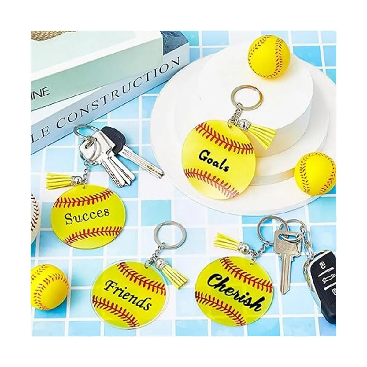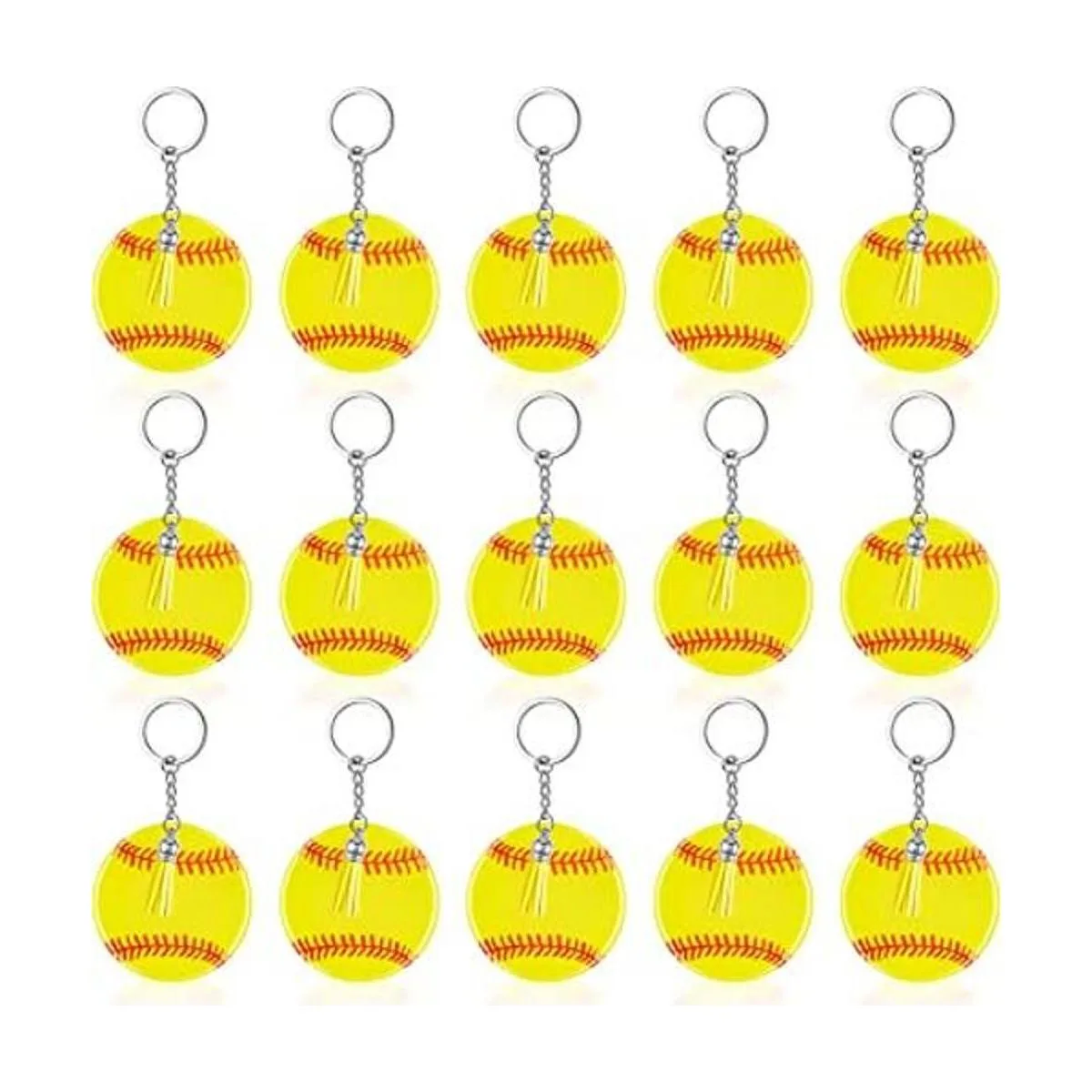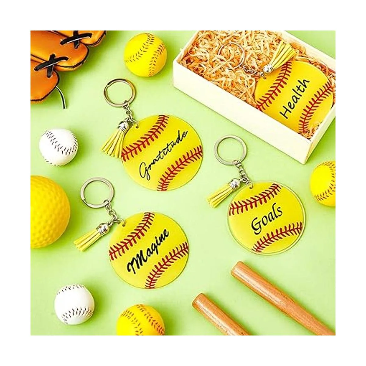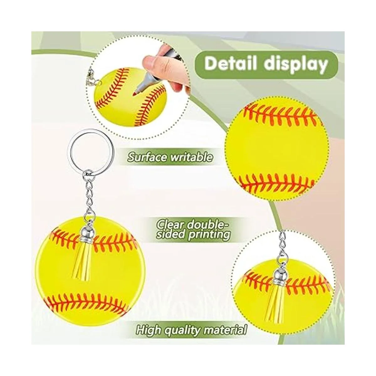 20 llaveros de acrílico de béisbol de sóftbol en blanco con borla, Amarillo, rojo, plateado., talla única