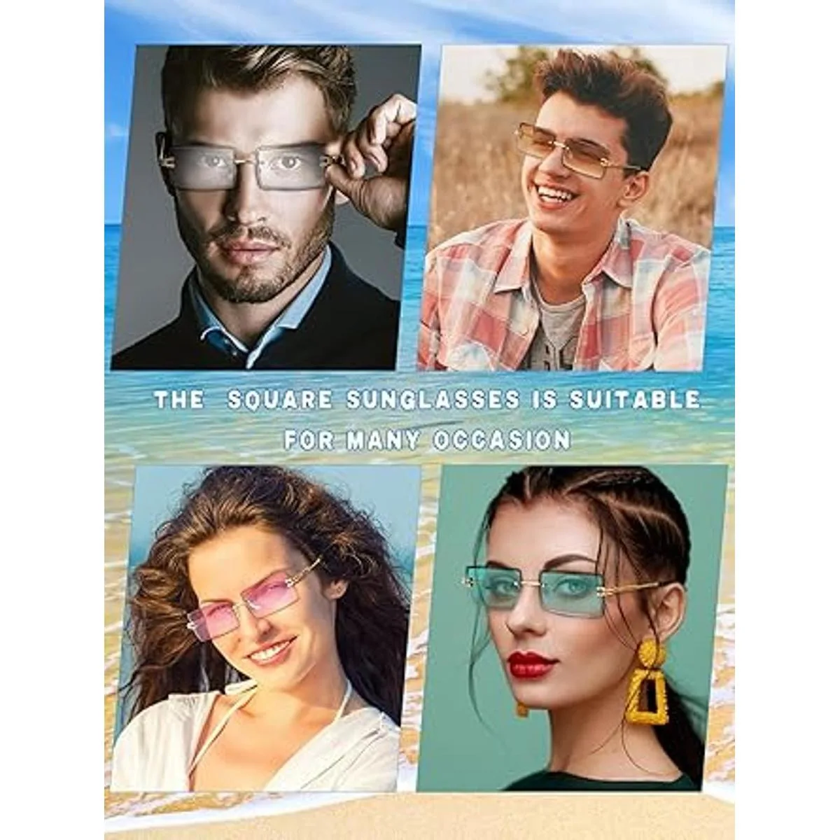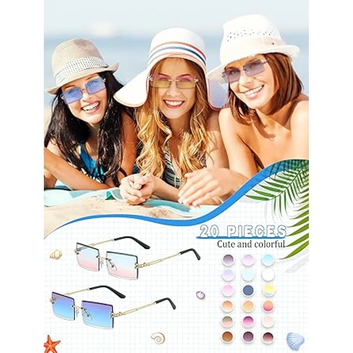 Rico en cantidad: el paquete viene con 20 pares de lentes de sol rectangulares sin montura para mujer en formas rectangulares, las ricas cantidades son suficientes para satisfacer tus demandas diarias de uso o compartir con tus amigos, haciendo que tu lleno de más dijes
