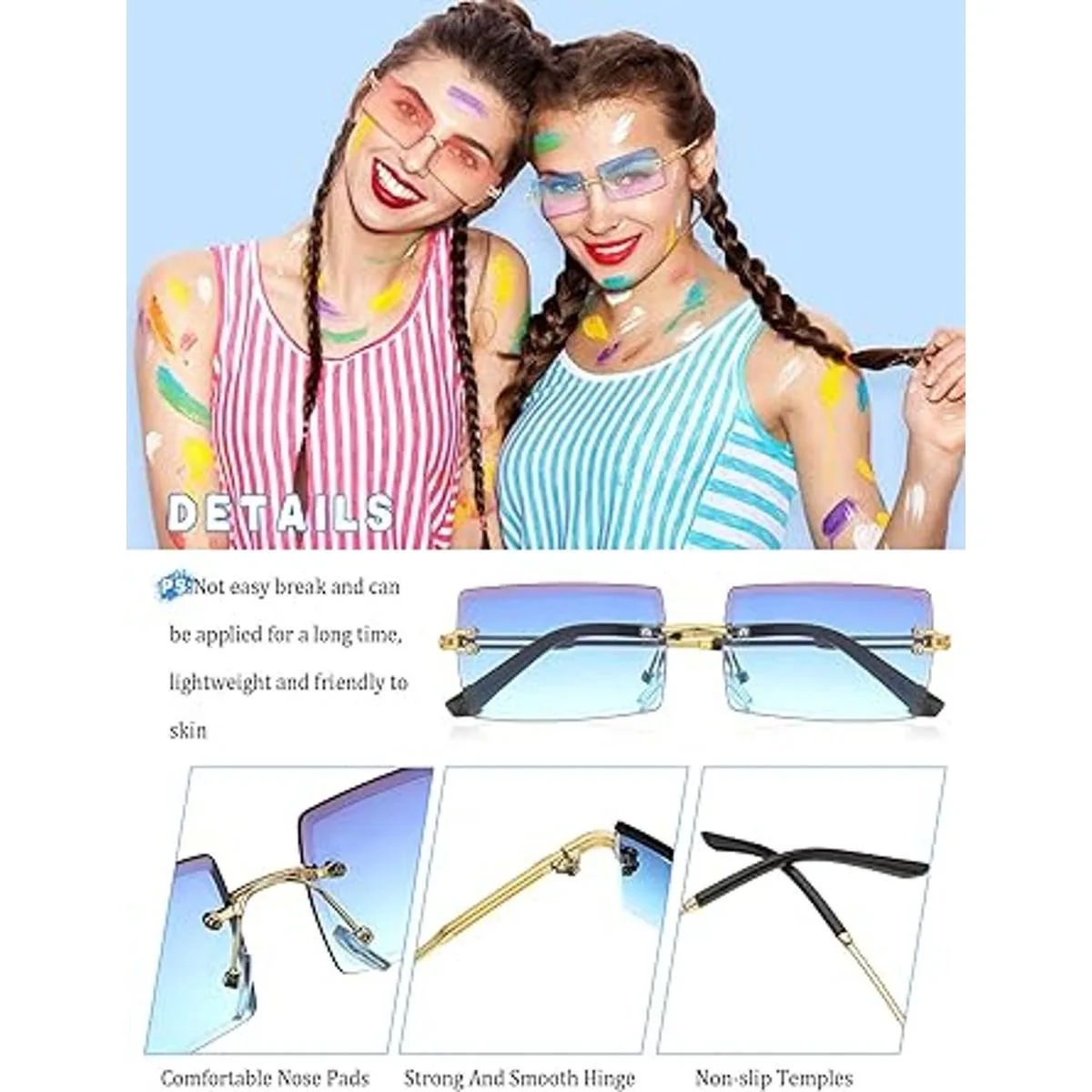Estilo retro. Estas gafas vintage sin marco se caracterizan en un marco sin montura, con colores versátiles y brillantes, hermosos y elegantes, y usarlos también se pueden combinar con otros disfraces de fiesta, y también adecuados para el uso diario