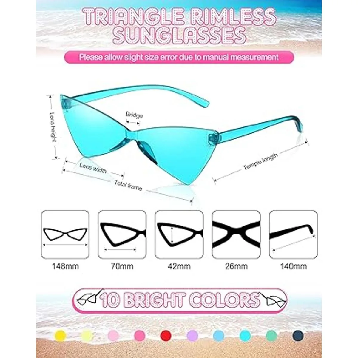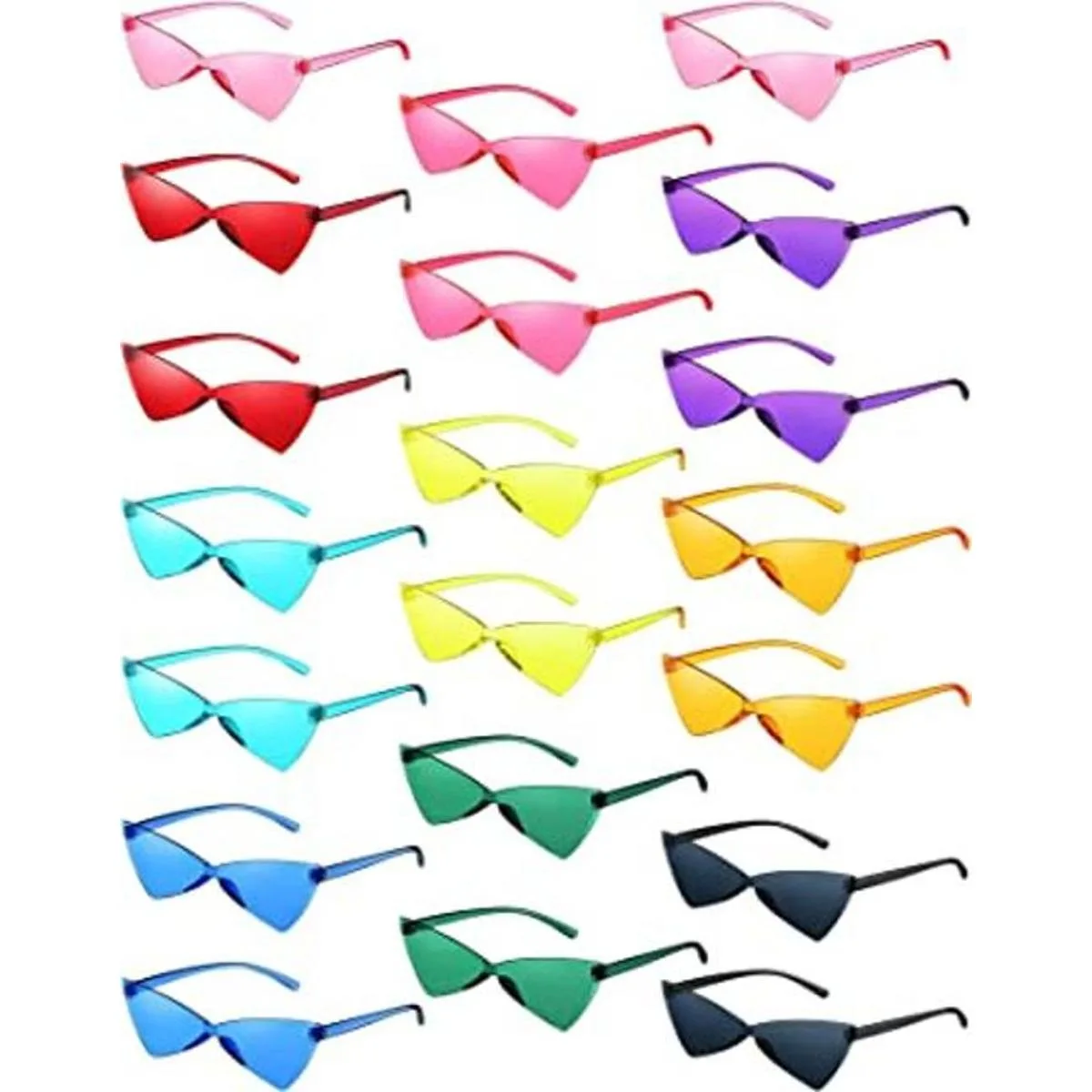 20 pares de lentes de sol triangulares sin montura de color caramelo transparentes con espejo de ojo de gato negro para mujeres y hombres, suministros de fiesta de cosplay, 10 colores, 10 colores, approx. 148 x 42 mm 5.83 x 1.65 inches
