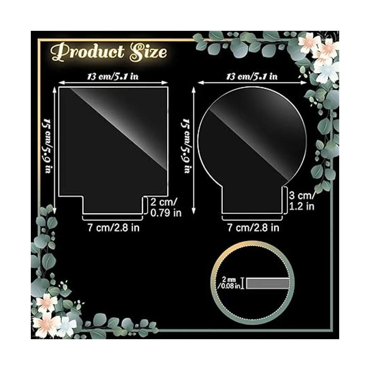 20 piezas de acrílico de 0.079 pulgadas para base de luz, hoja de acrílico transparente, cuadrado y redondo, letrero en blanco con protección de doble cara para proyectos de visualización LED de bricolaje, manualidades cuadrado, redondo