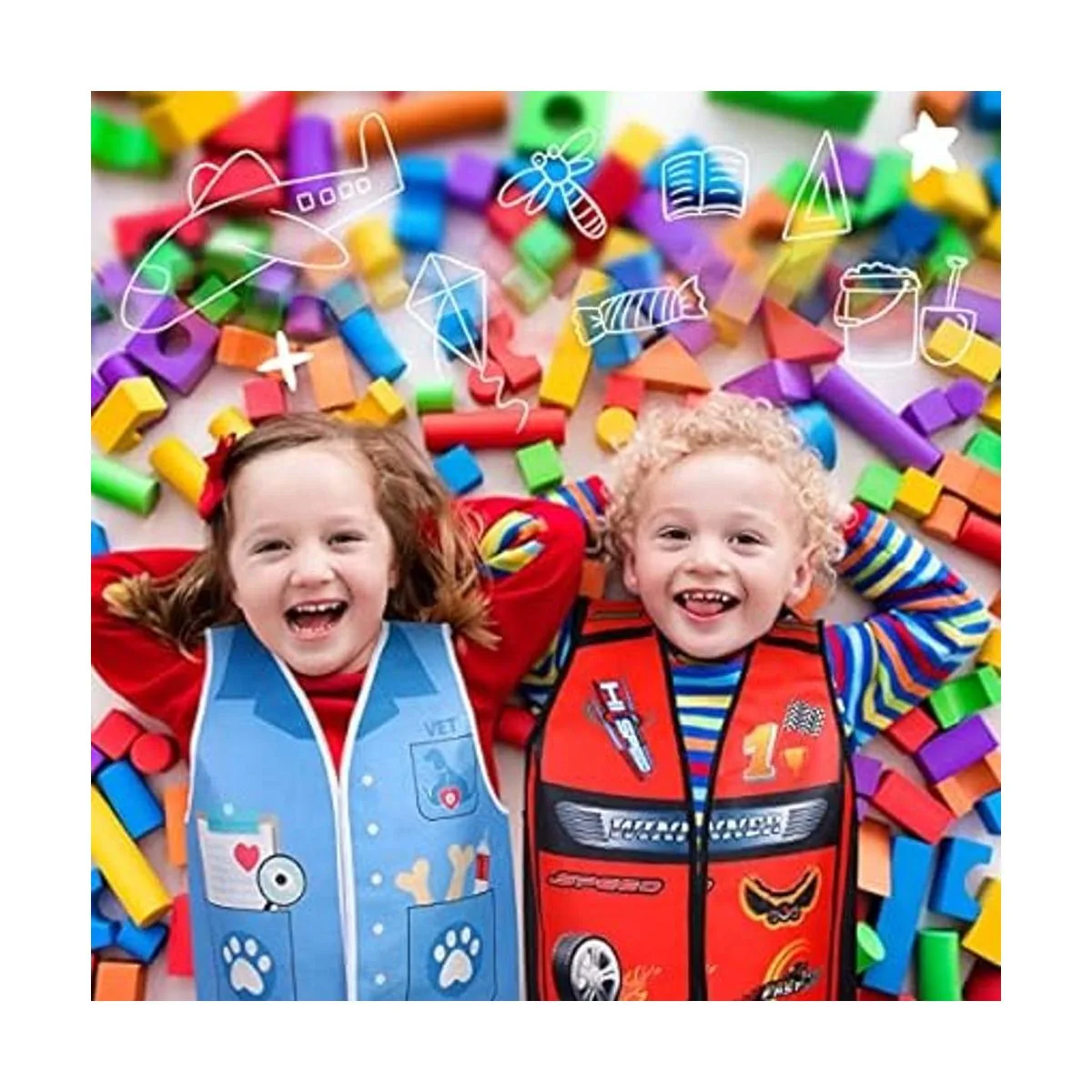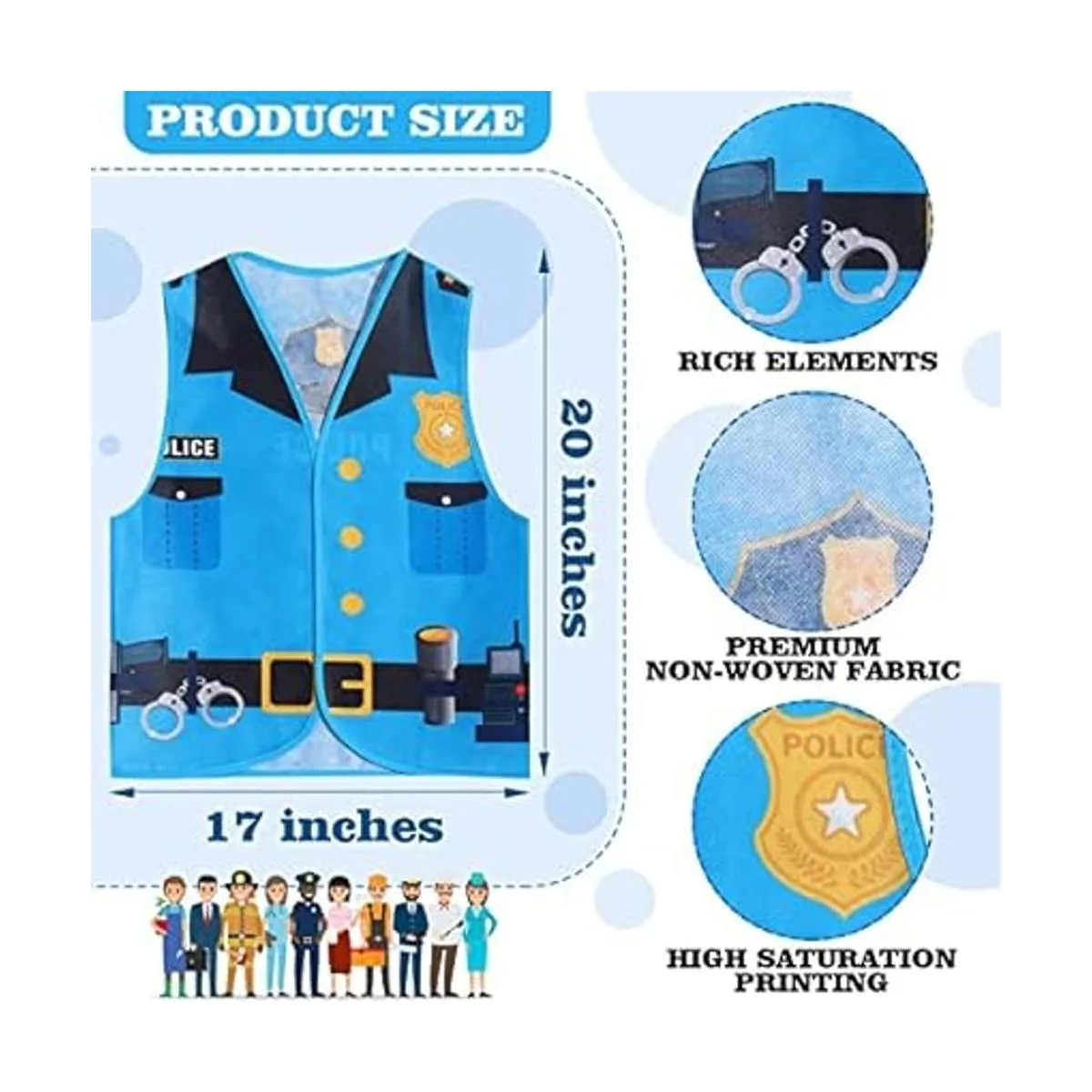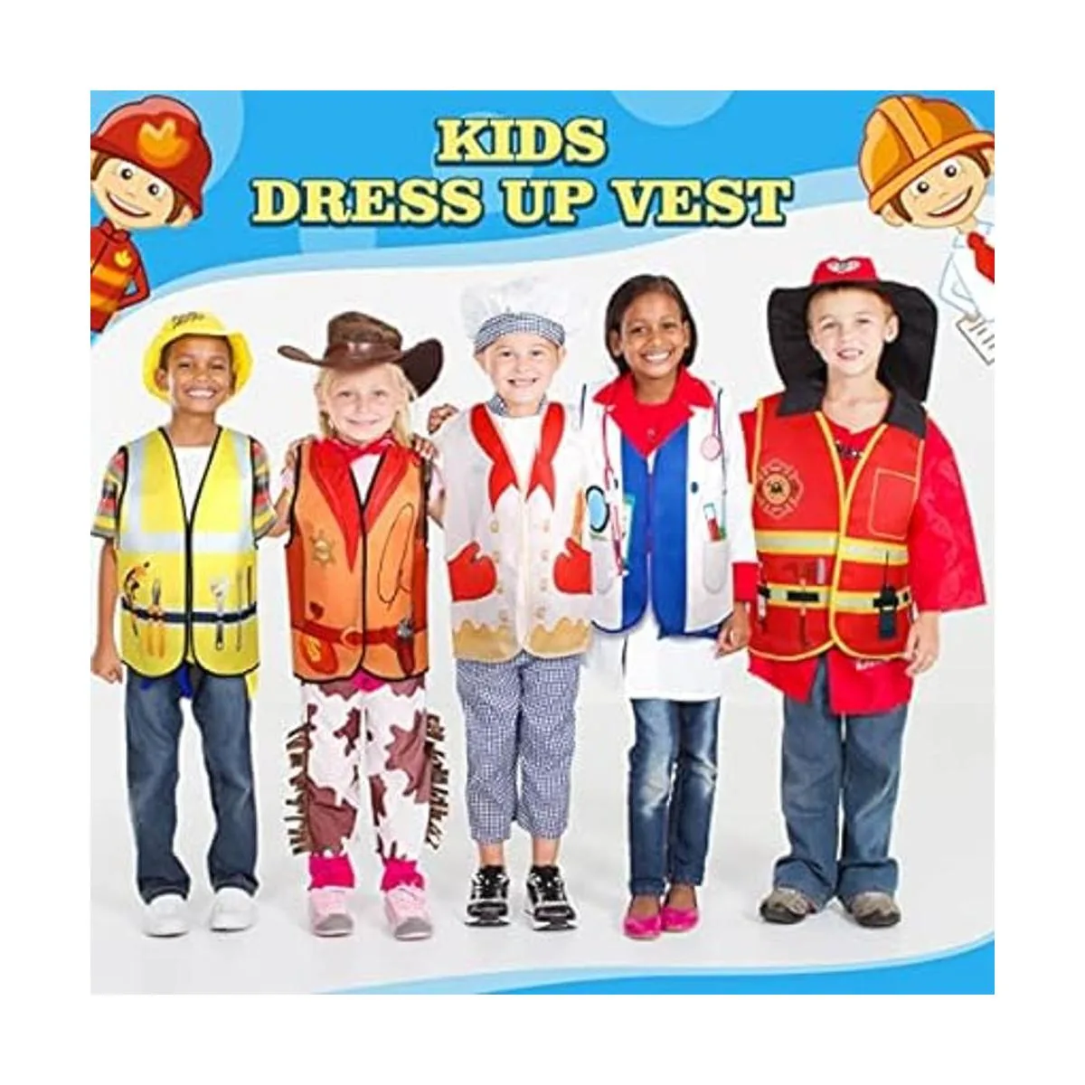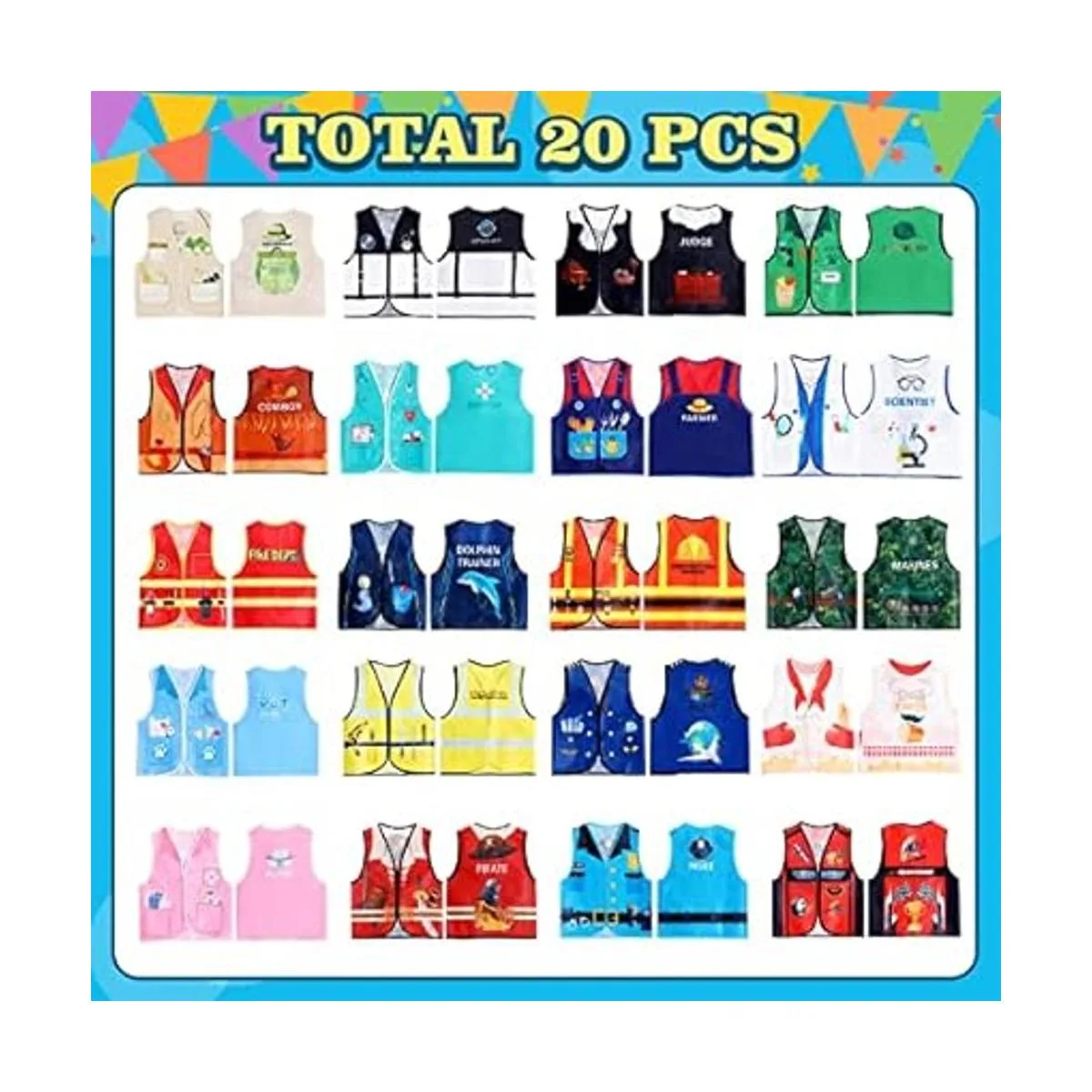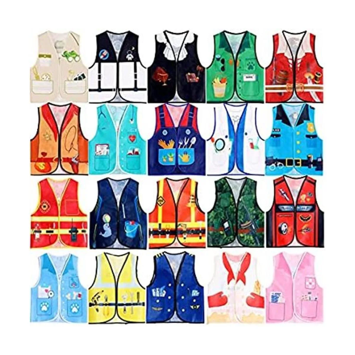 20 piezas de chaleco de vestir para niños, disfraz de carrera, juego de rol, ropa de cosplay, disfraz de simulación y juego para niños, disfraz de médico, policía, bombero, automóvil, corredor, vaquero, agricultores, trabajador, pirata