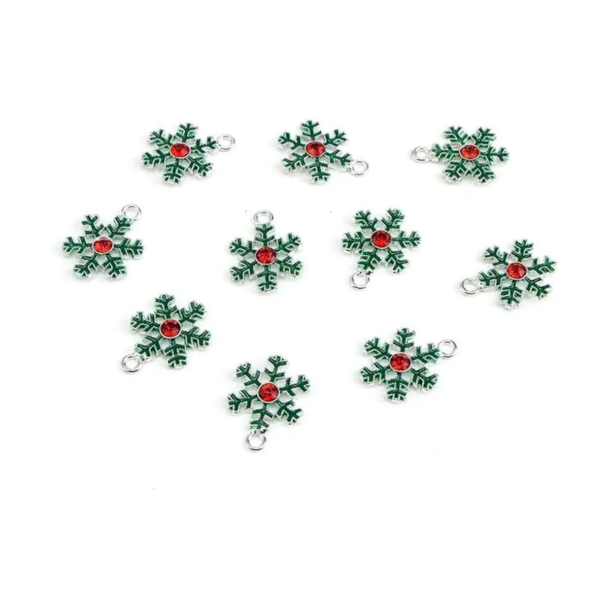 20 piezas de dije de esmalte surtido chapado en plata para árbol de Navidad, guirnalda de copos de nieve, campana, accesorios de manualidades para collares, pulseras, aretes, joyería para hacer bricolaje