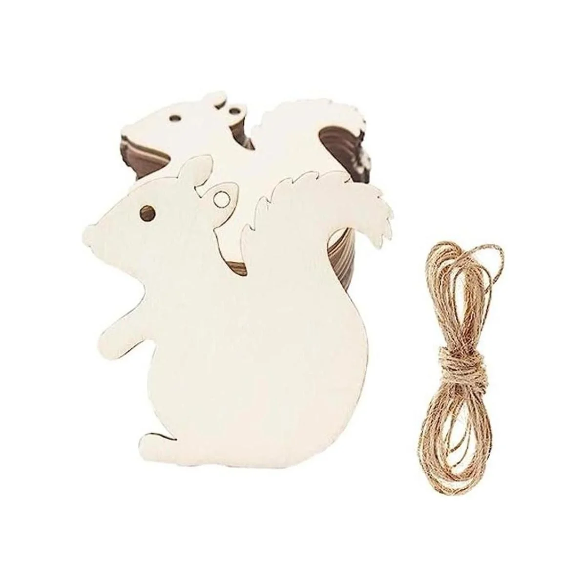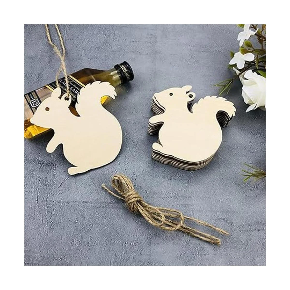 20 piezas de madera de animales rebanadas en forma de ardilla piezas de madera en blanco tienen agujero sin terminar adornos de madera etiquetas de regalo arte arte para etiquetas de vino boda fiesta Navidad niño DIY Craft