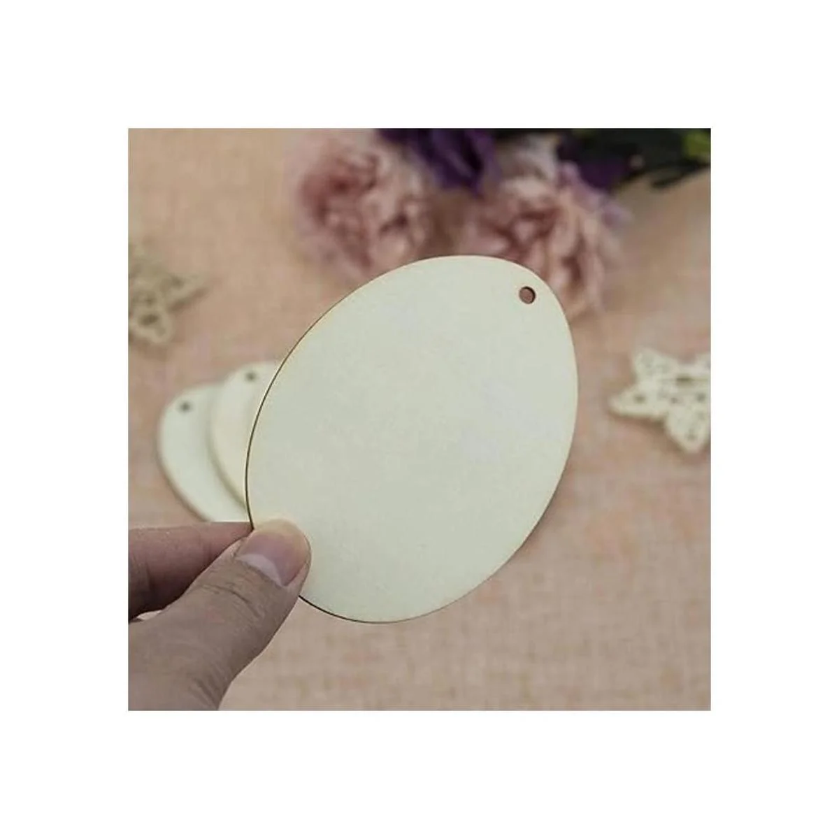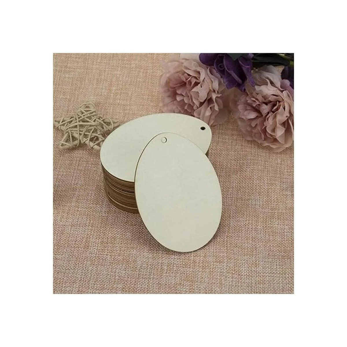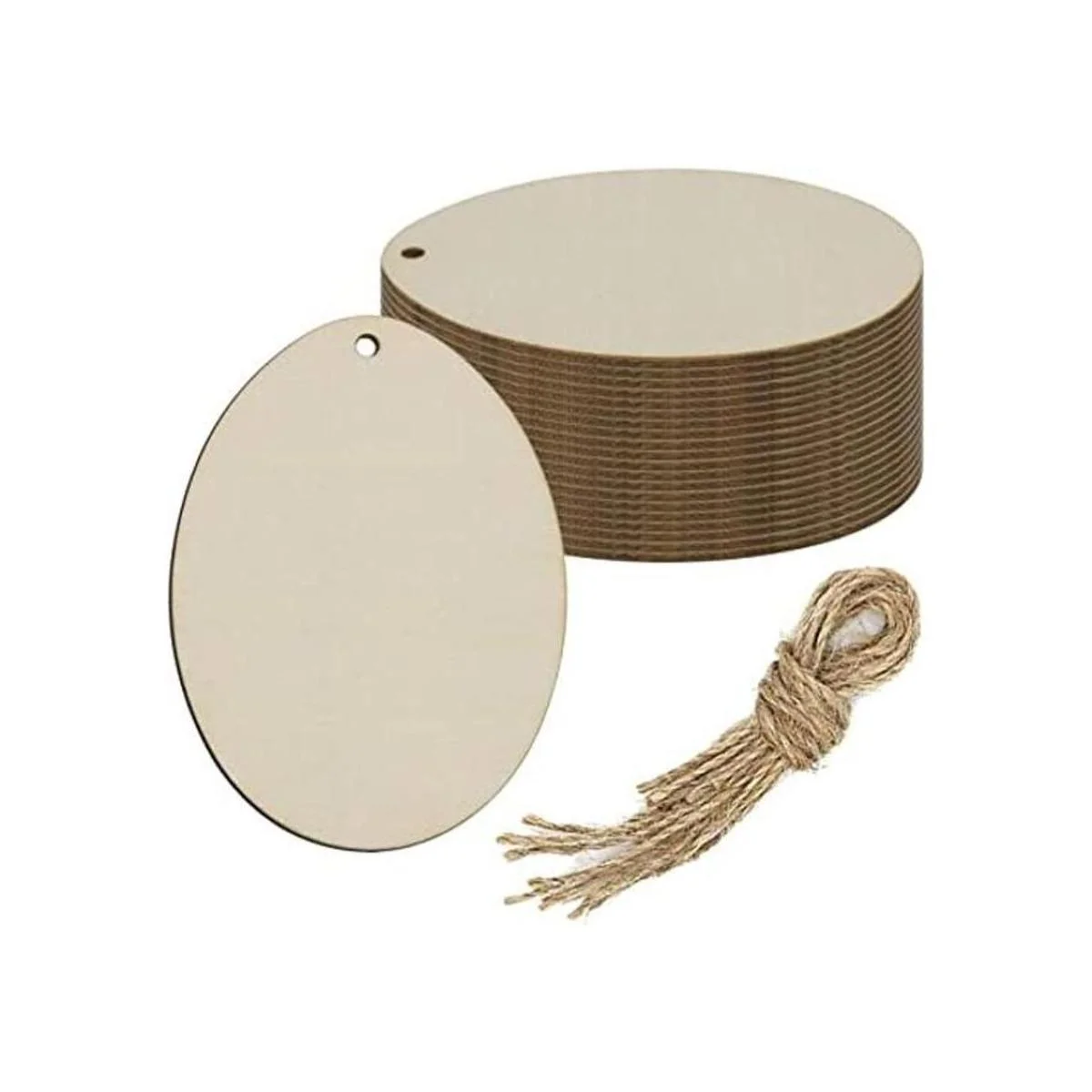 Características: adornos colgantes de madera en forma de huevo en blanco, con un agujero y cuerda, se puede utilizar para colgar decoración. Perfecto para usar como etiquetas, tablero de fiesta, tablero de aula.