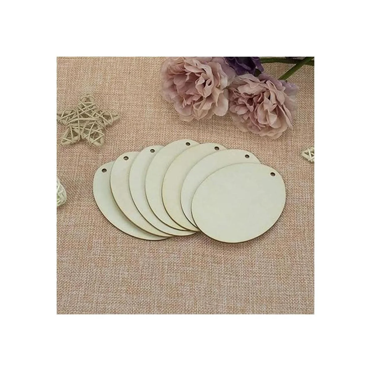 : Material: madera. Tamaño aproximado: 2.83×3.94×0.1 pulgadas / 2.8×3.9×0.1 in. Hecho de madera natural de buena calidad con cuerdas, cortado con láser y pulido.