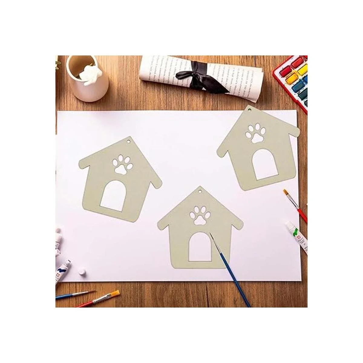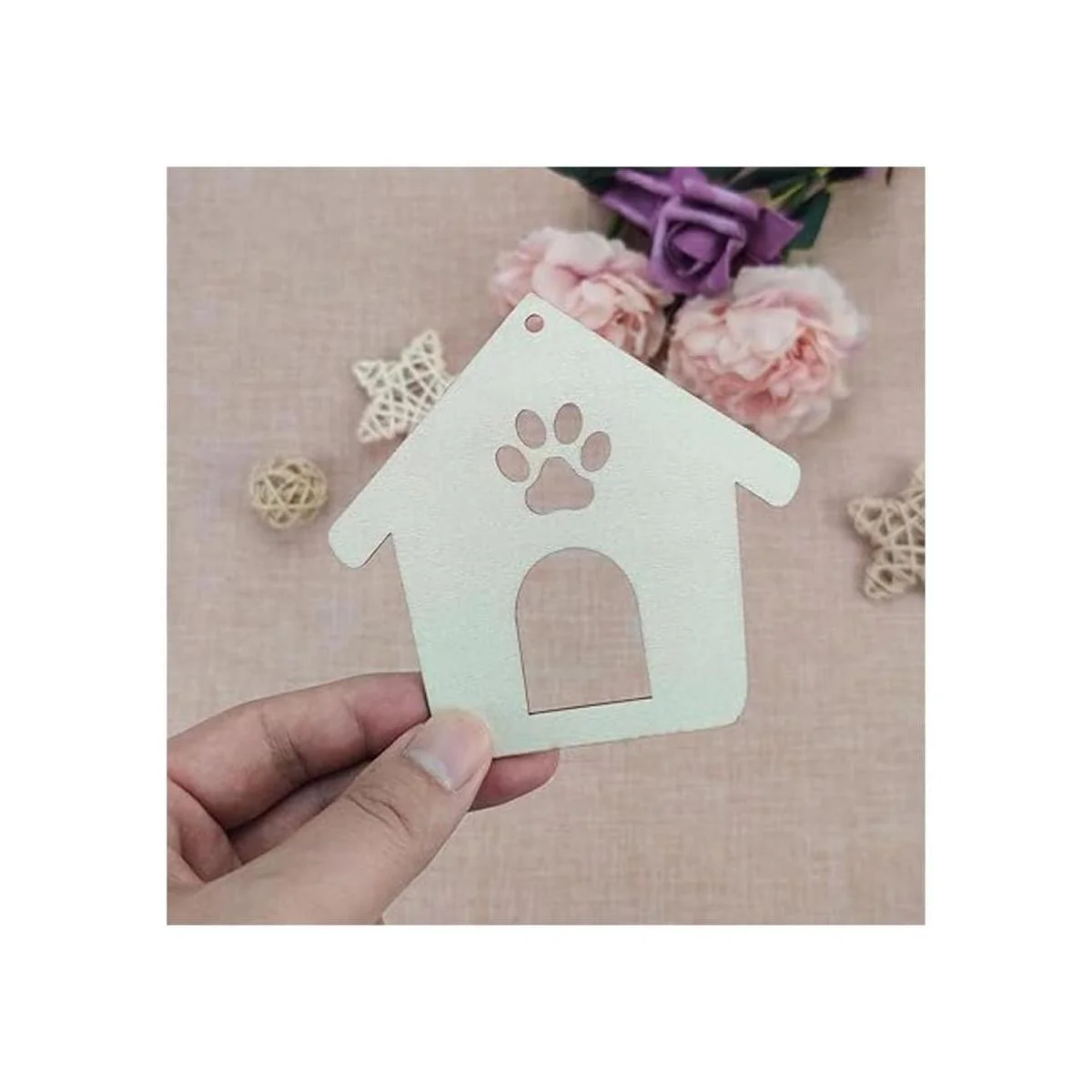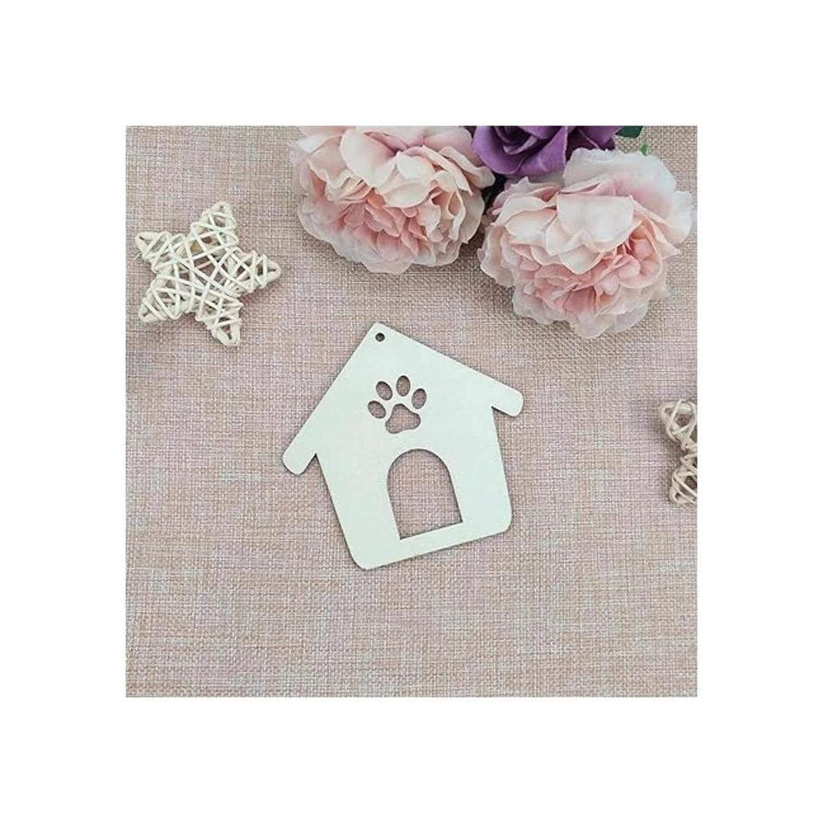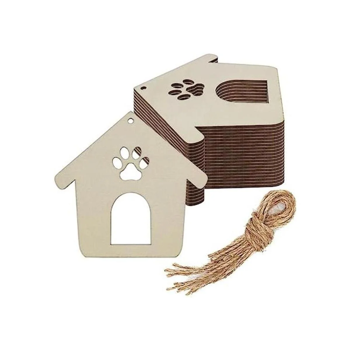 Características: adornos de madera con forma de casa de pata de perro. Perfecto para usar como etiquetas, tablero de fiesta, tablero de aula.