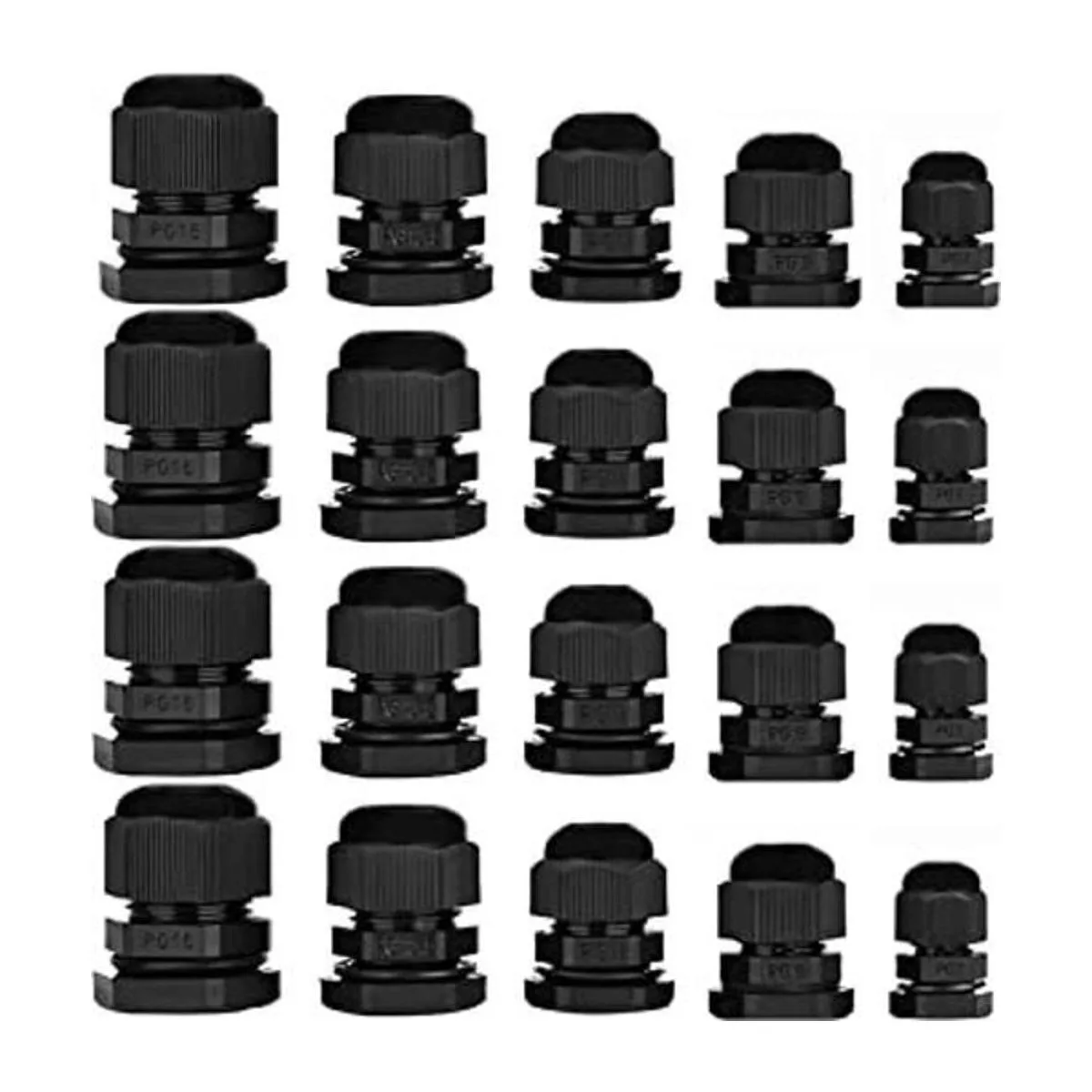 20 piezas de prensaestopas impermeables ajustables de 0.1180.512 in, conectores de cable PG7 PG9 PG11 PG13.5 PG16 protectores de alambre de juntas de plástico