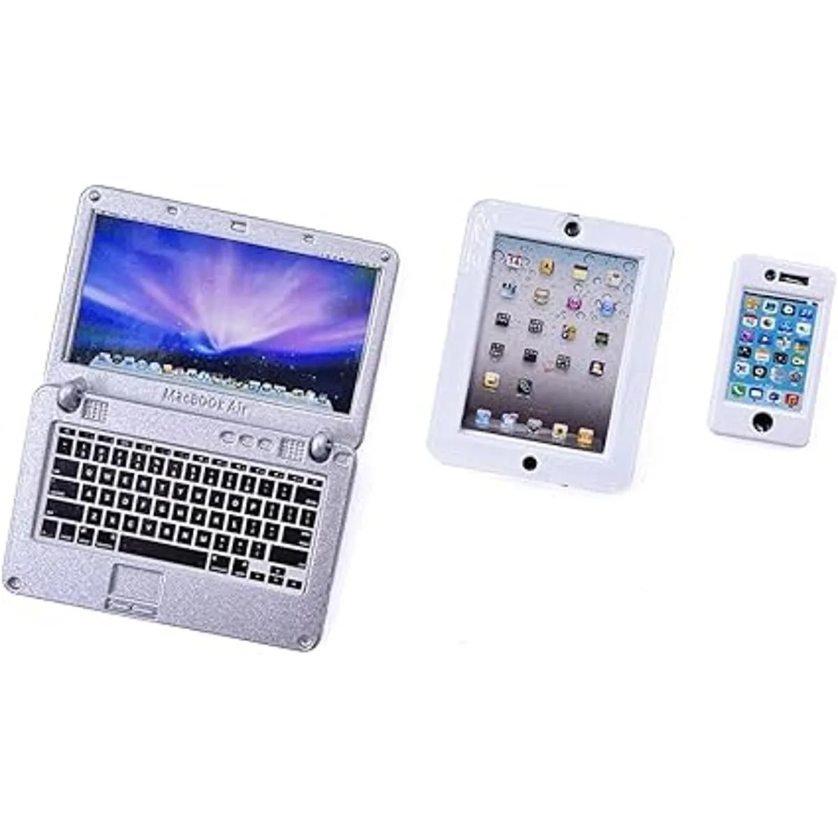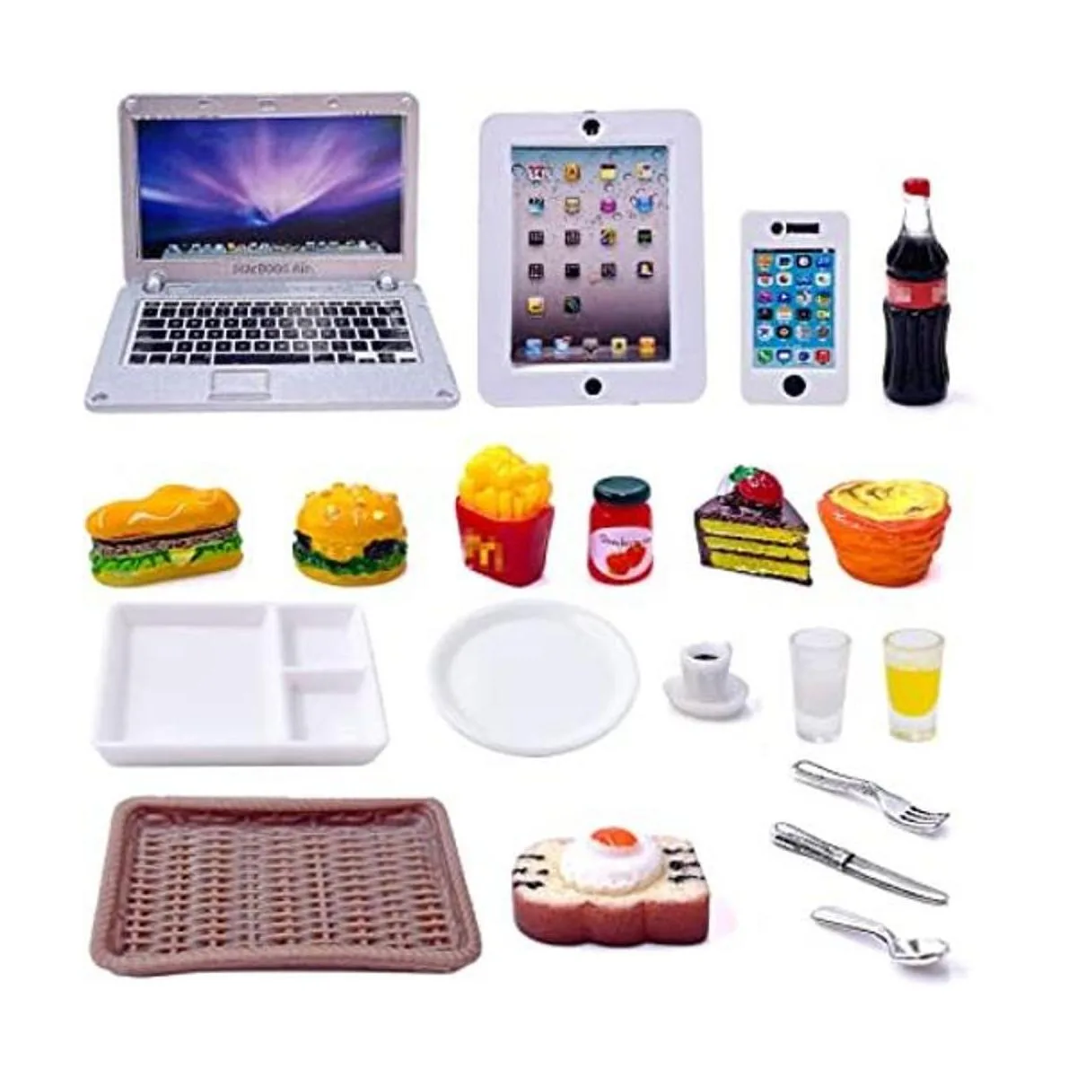 Material: los portátiles, tabletas y teléfonos móviles están hechos de metal, el portátil se puede abrir y cerrar, los alimentos en miniatura están hechos de material ABS. Todos los artículos y materiales se revisan tres veces para una alta calidad.