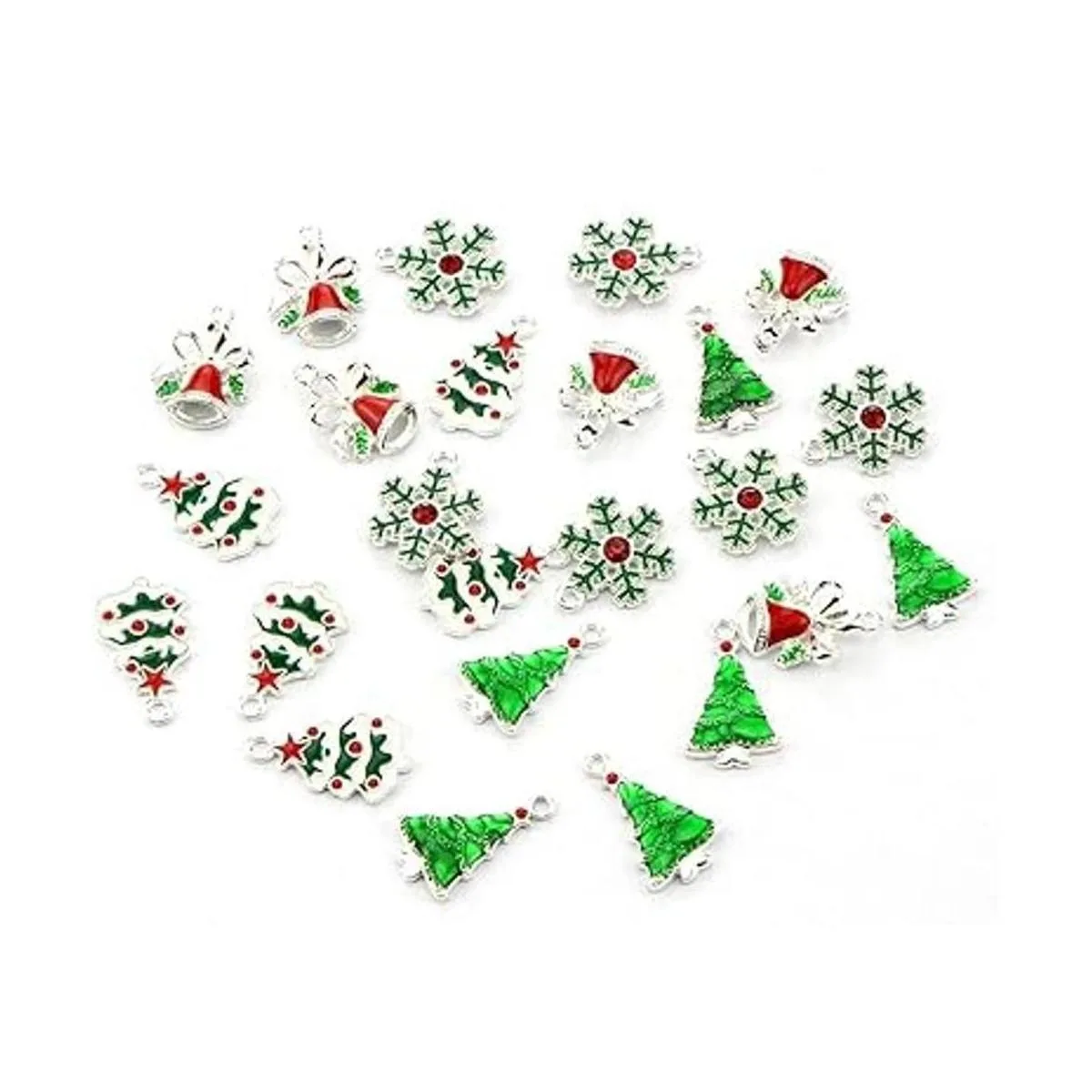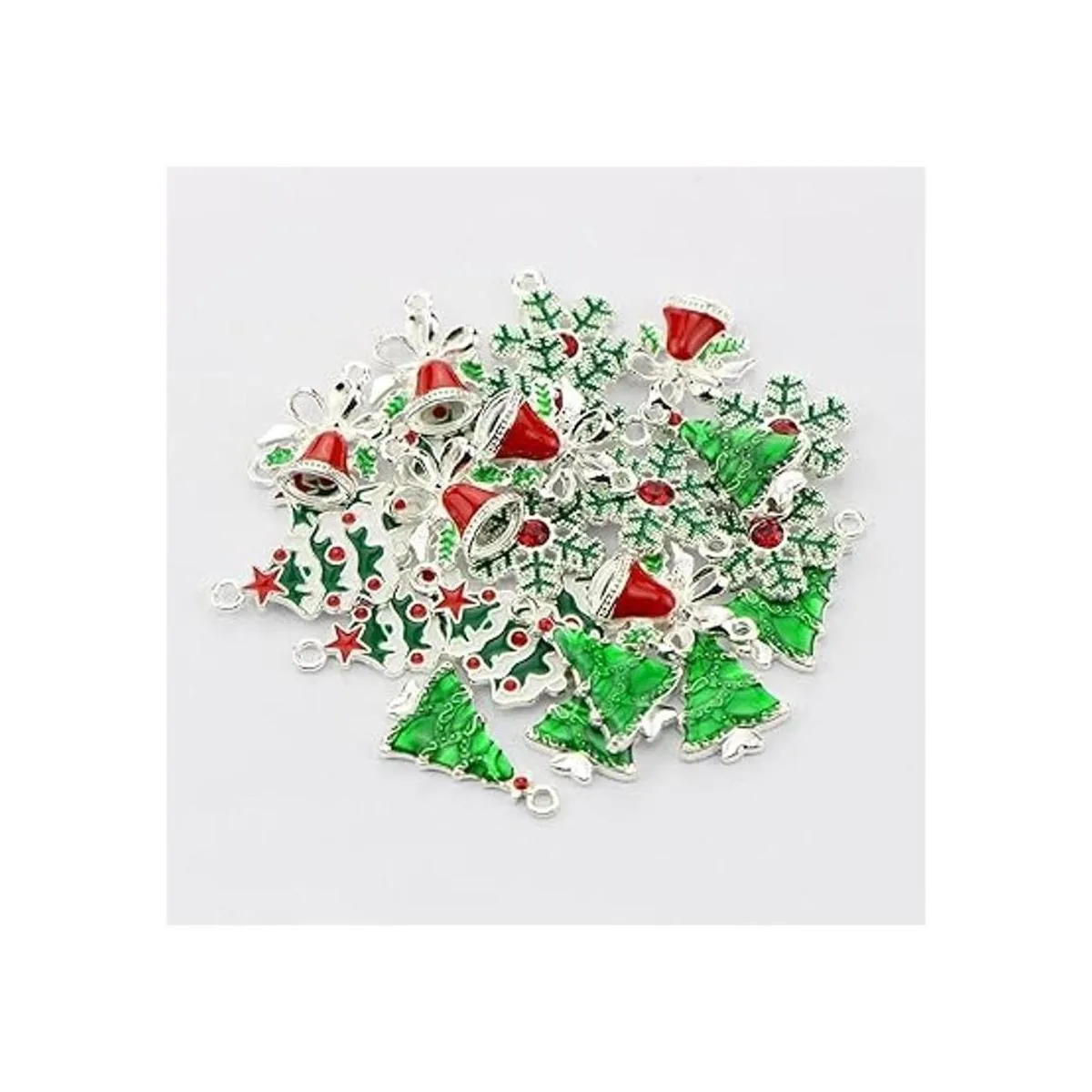 20 piezas de temática navideña surtido decorativo esmalte encanto colgante árbol de Navidad encantos copo de nieve guirnalda artesanía encanto DIY para collar pulsera tobillo pendiente joyería DIY fabricación
