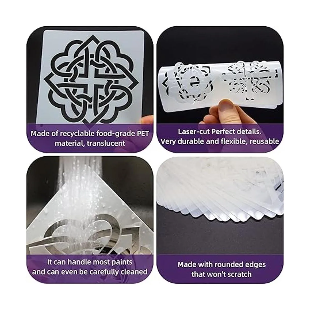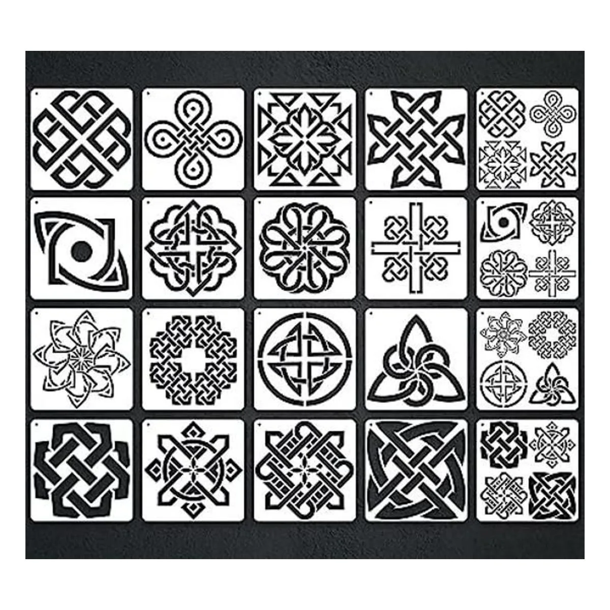 20 plantillas celtas, plantilla de nudo de triquetra celta, plantilla de mylar reutilizable de 6 x 6 pulgadas para manualidades y decoraciones, plantilla vikinga para pintar en madera, lienzo, tela, suelo, pared y azulejos