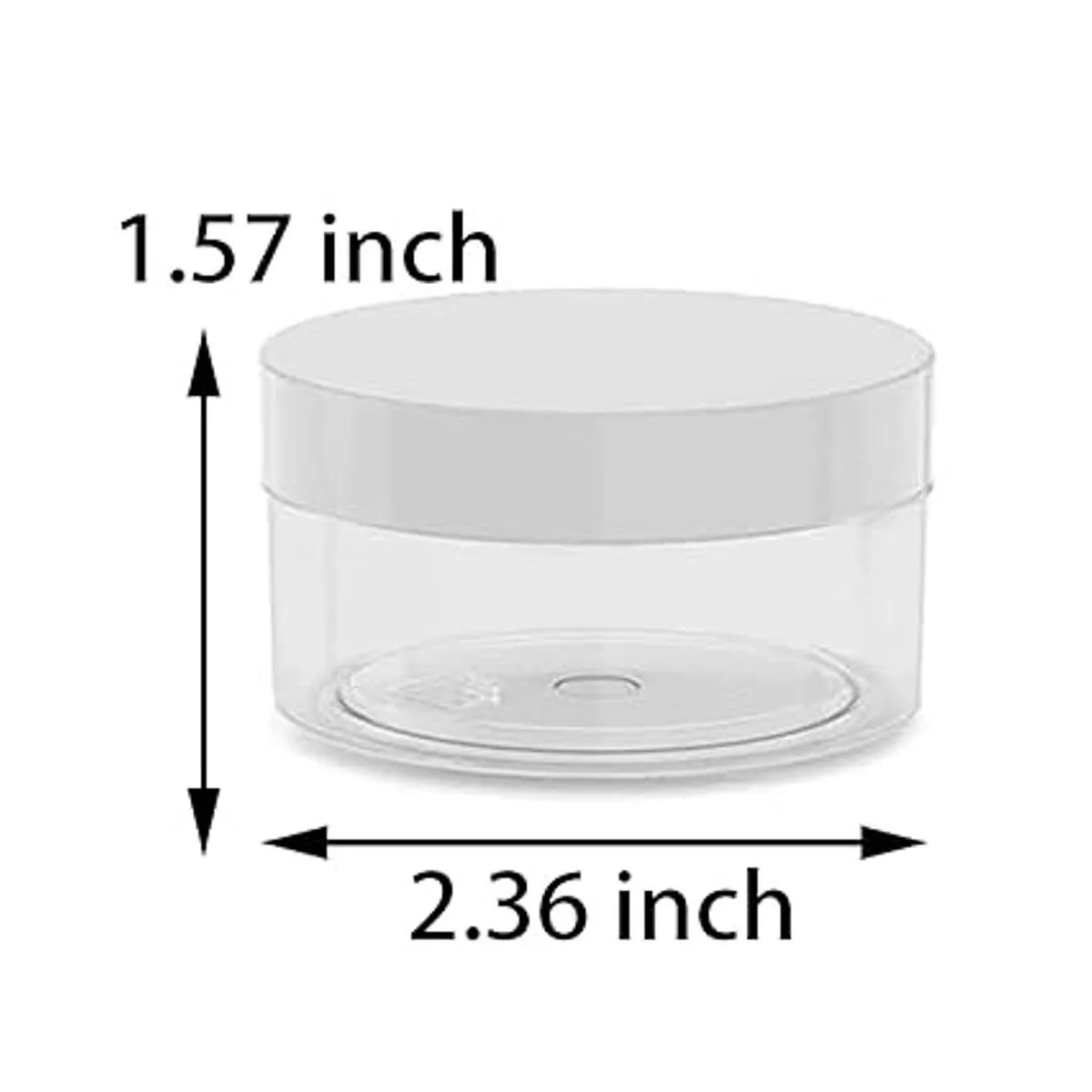 Tamaño y cantidad: cada paquete incluye 20 tarros de plástico, cada frasco con tapa de altura es de 1.57 pulgadas, el diámetro de apertura es de 1.96 pulgadas, el diámetro del tarro es de 2.36 pulgadas. Capacidad de tarros cosméticos: 2 onzas.