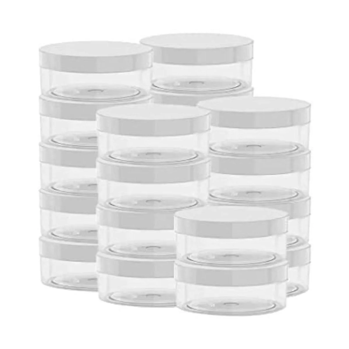 20 recipientes de plástico de 2 onzas con tapas de rosca redondas, tarros de cosméticos a prueba de fugas, recipientes transparentes para cosméticos, salves, bálsamos, bálsamo labial u otros, tapas blancas