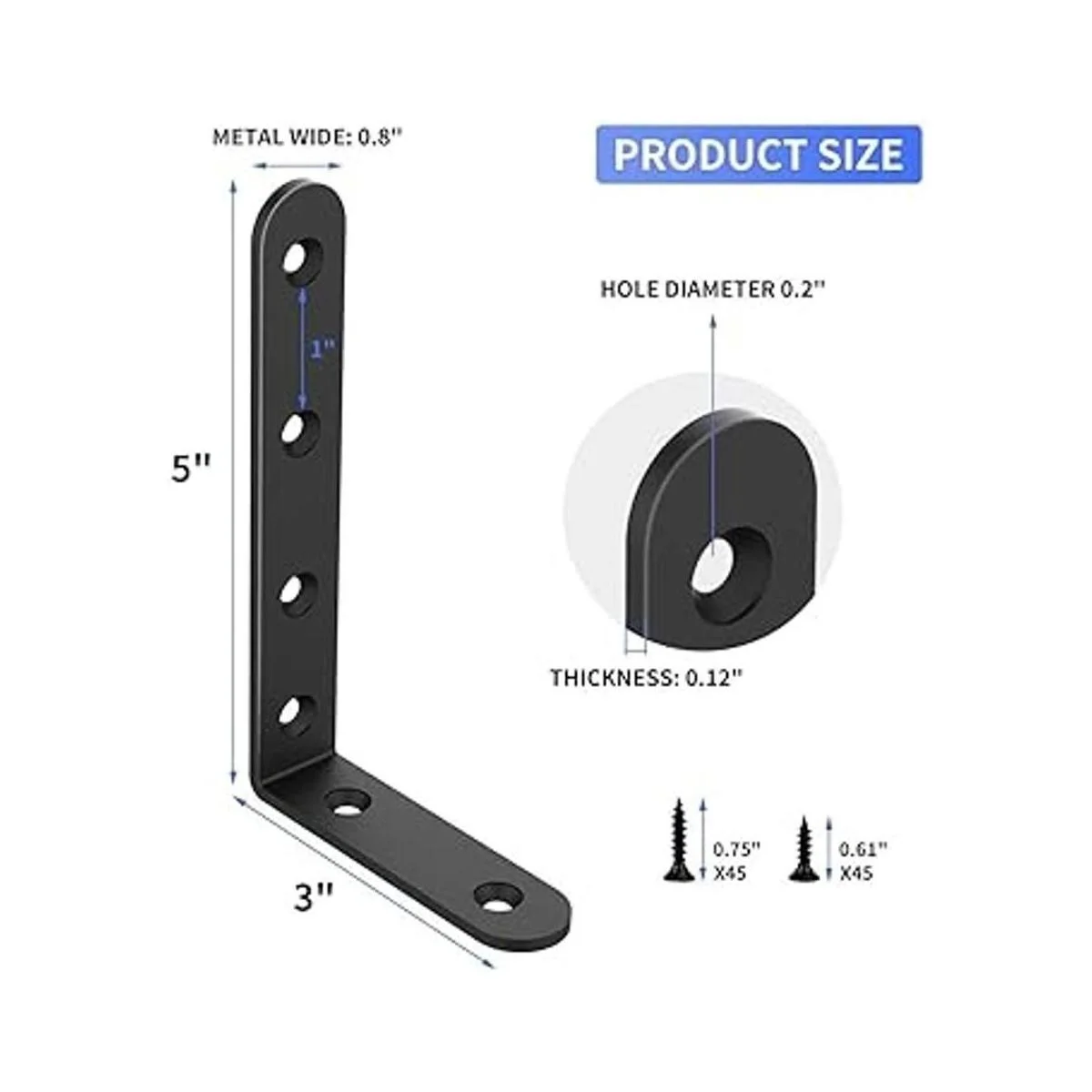 Tamaños del soporte de estante: 5 pulgadas de largo x 3 pulgadas de alto. Tamaño del metal: 0.8 pulgadas de ancho x 0.12 pulgadas de grosor.