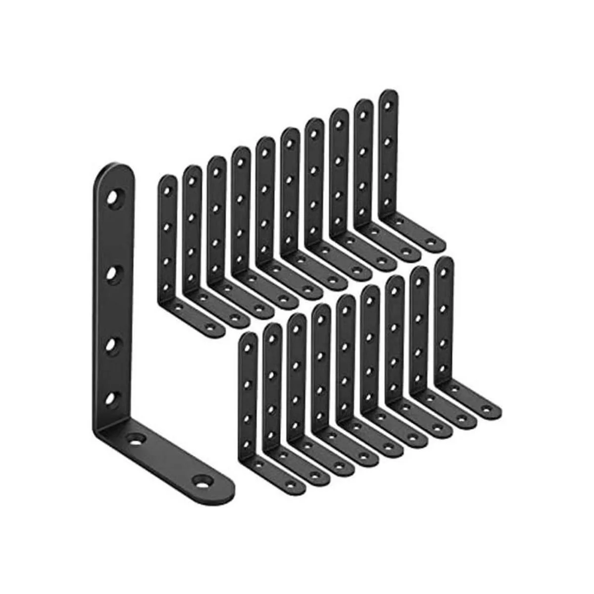 20 soportes de estante en L resistentes: El soporte en L de estante de metal está hecho de acero resistente y podría soportar un peso máximo de 35 libras por par. Nuestros soportes de esquina negros vienen con un diseño de L y pueden funcionar perfectamente para instalar estantes, muebles y estantes de pared, etc.