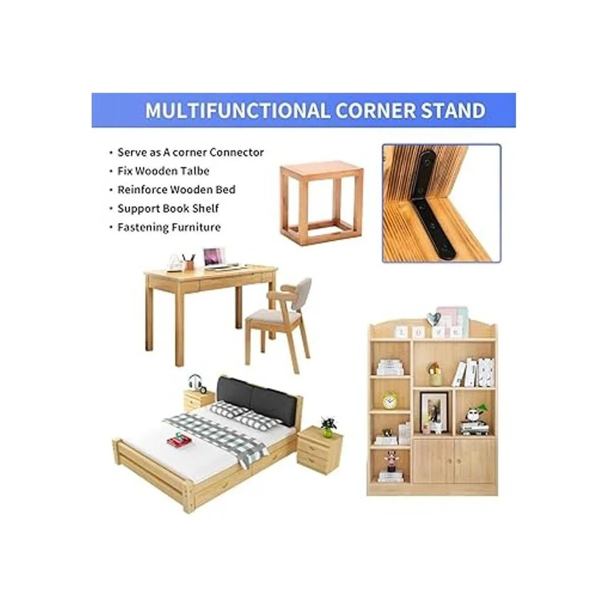 Fáciles de colocar: Incluso si no eres bueno en manualidades, es fácil de instalar. El paquete incluye los tornillos de acero inoxidable. Solo tienes que asegurarte de que los soportes de esquina estén perpendiculares a los muebles.