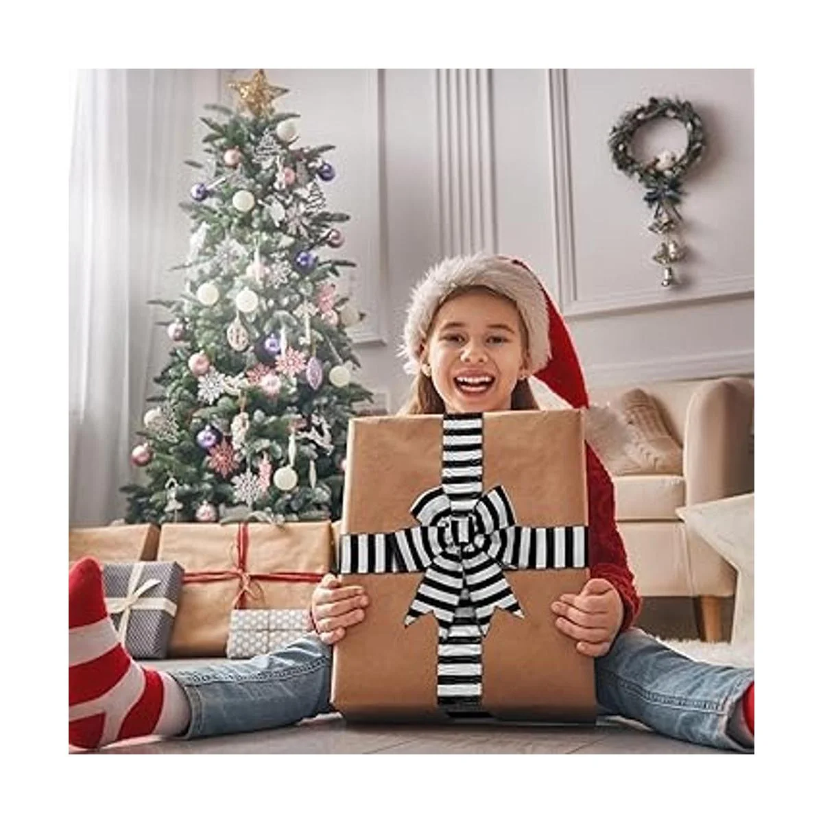 Lo que recibirás: el paquete viene con 2 rollos de cintas de rayas negras de Navidad, cada rollo mide aproximadamente 10 yardas de largo, 2.6 pulgadas de ancho, una longitud total de 20 yardas en el paquete, longitud suficiente para satisfacer tus necesidades diarias de fabricación de manualidades