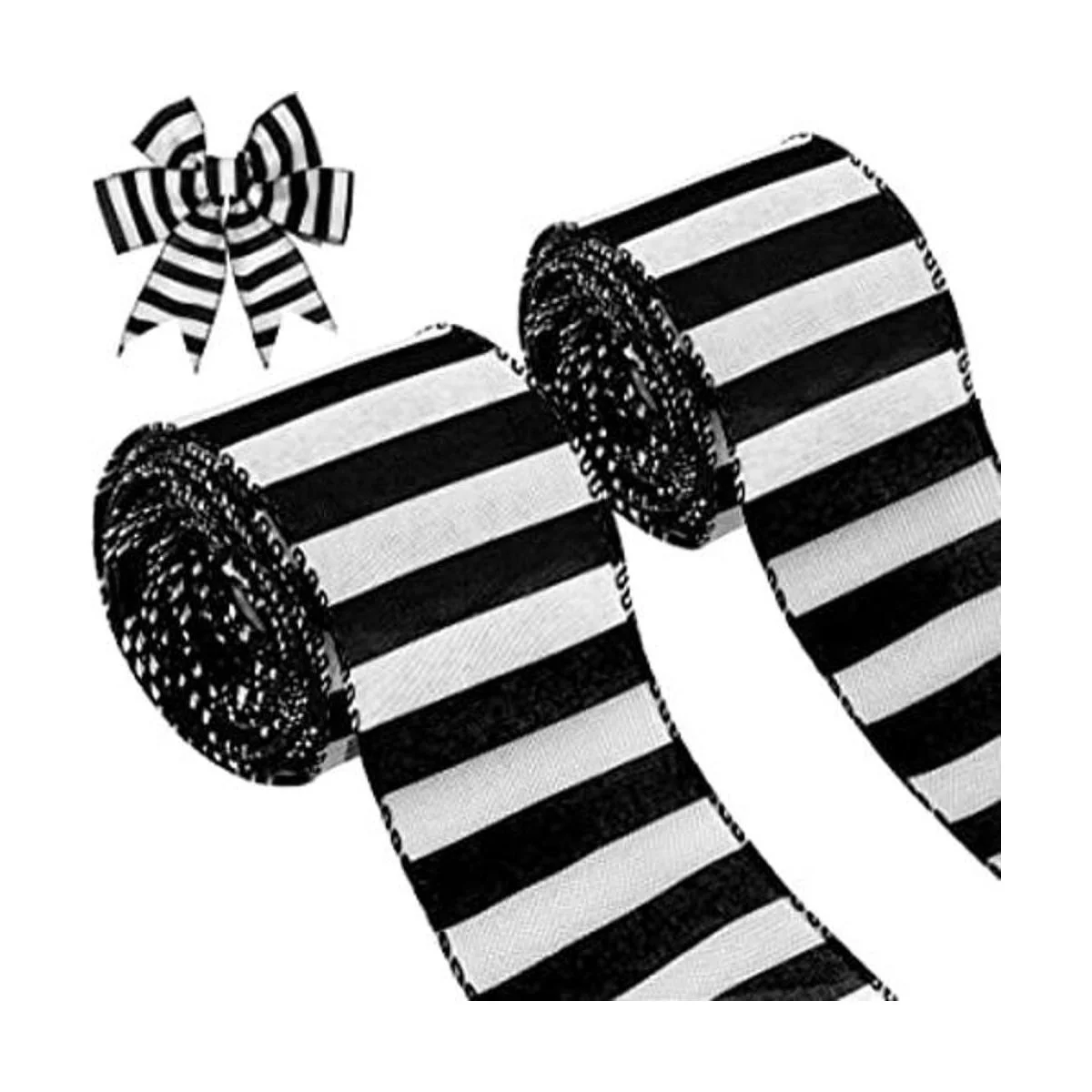 20 yardas, 2 rollos de cinta de rayas blancas y negras de Navidad para árbol de Navidad, envoltura de otoño, manualidades y decoración 2.5 pulgadas de ancho