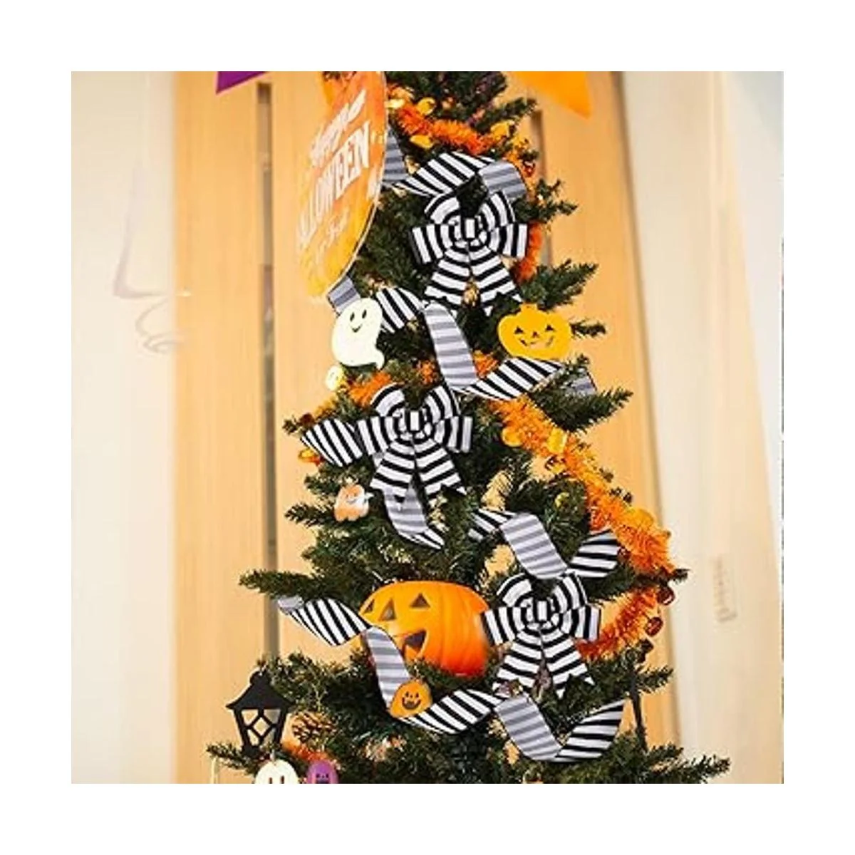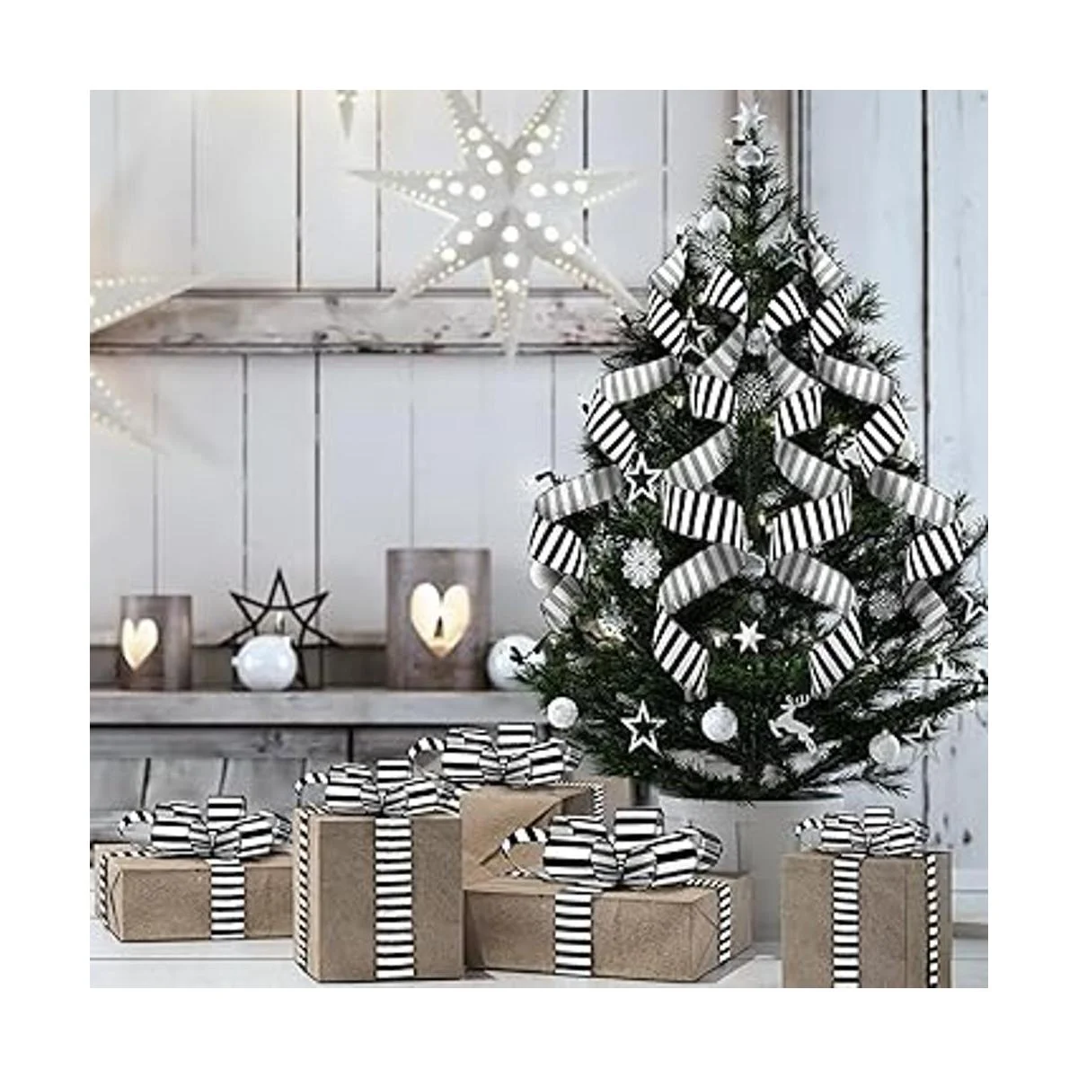 Diseño de rayas elegante: nuestras cintas de rayas negras cuentan con un estilo de rayas blancas y negras, que te aportan una sensación clásica y elegante, adecuadas para decoraciones del hogar y accesorios de Navidad, y hacen que tu hogar sea más exquisito y elegante