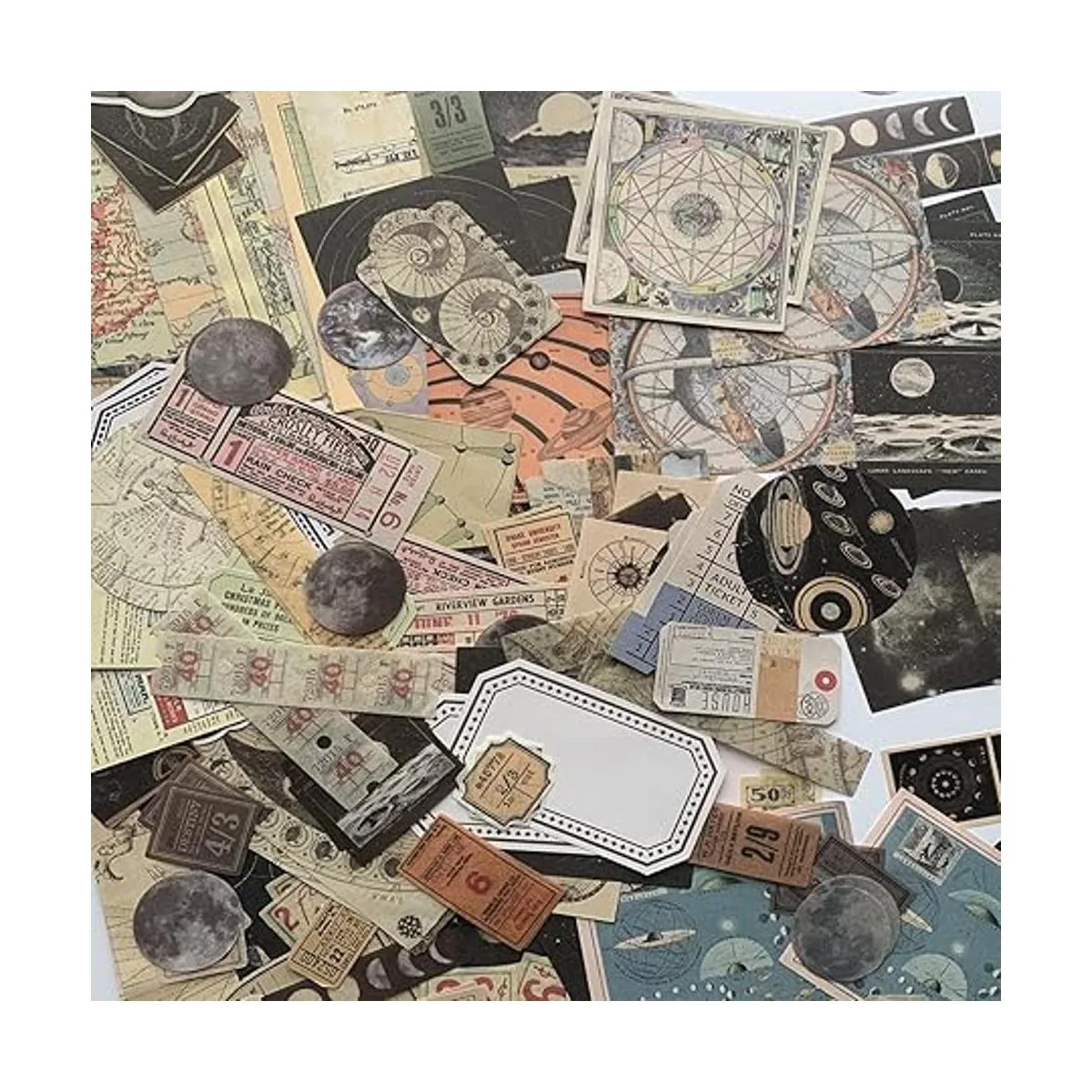 Kit de diario de basura con temática espacial: diseños astrológicos y espaciales, incluyendo fases lunares, planeta, espacio, sol y estrella, astronomía, mapas del viejo mundo, recibos, boletos y mucho más. Perfecto para diarios chatarra, álbumes de recortes, collages o proyectos de arte que requieren una sensación mística