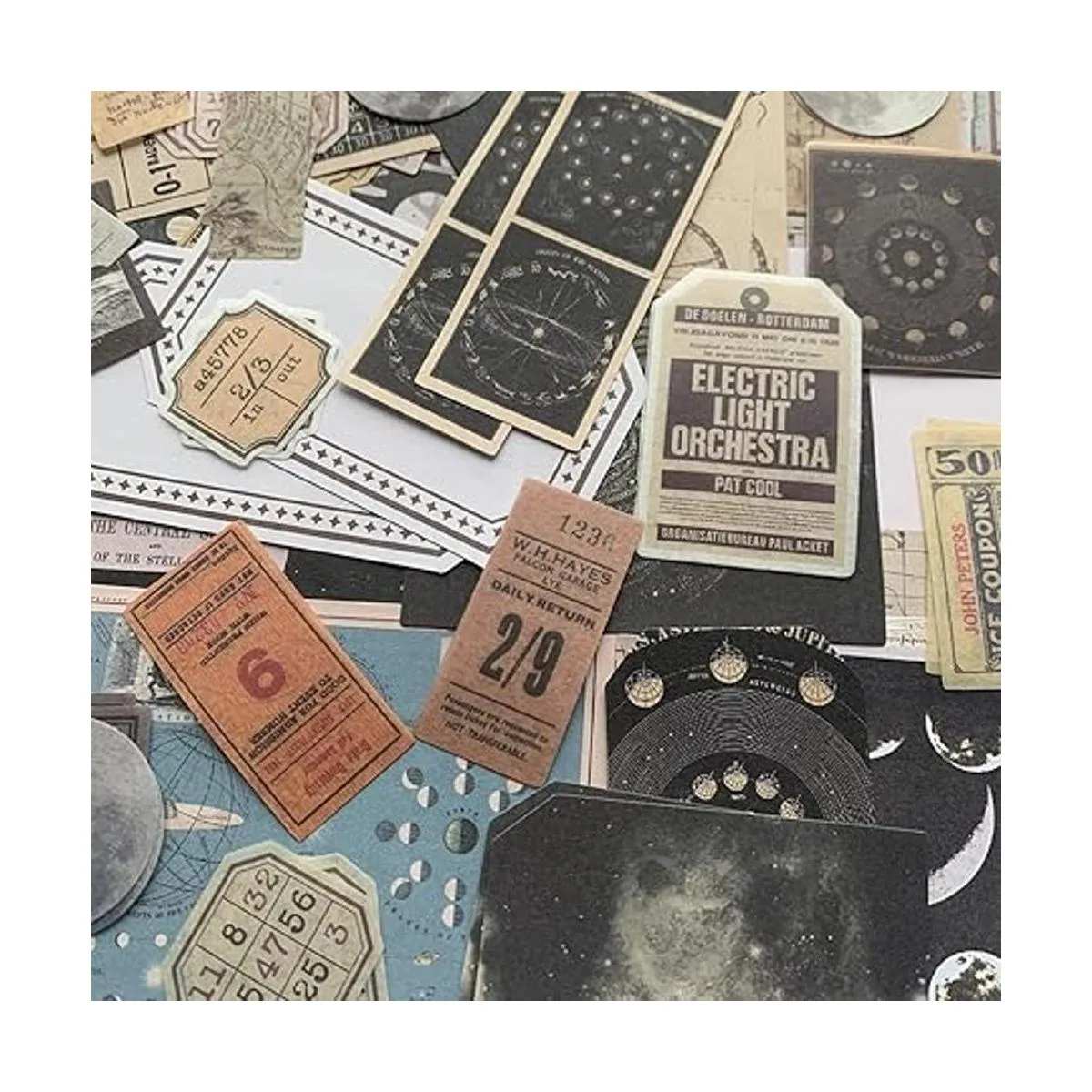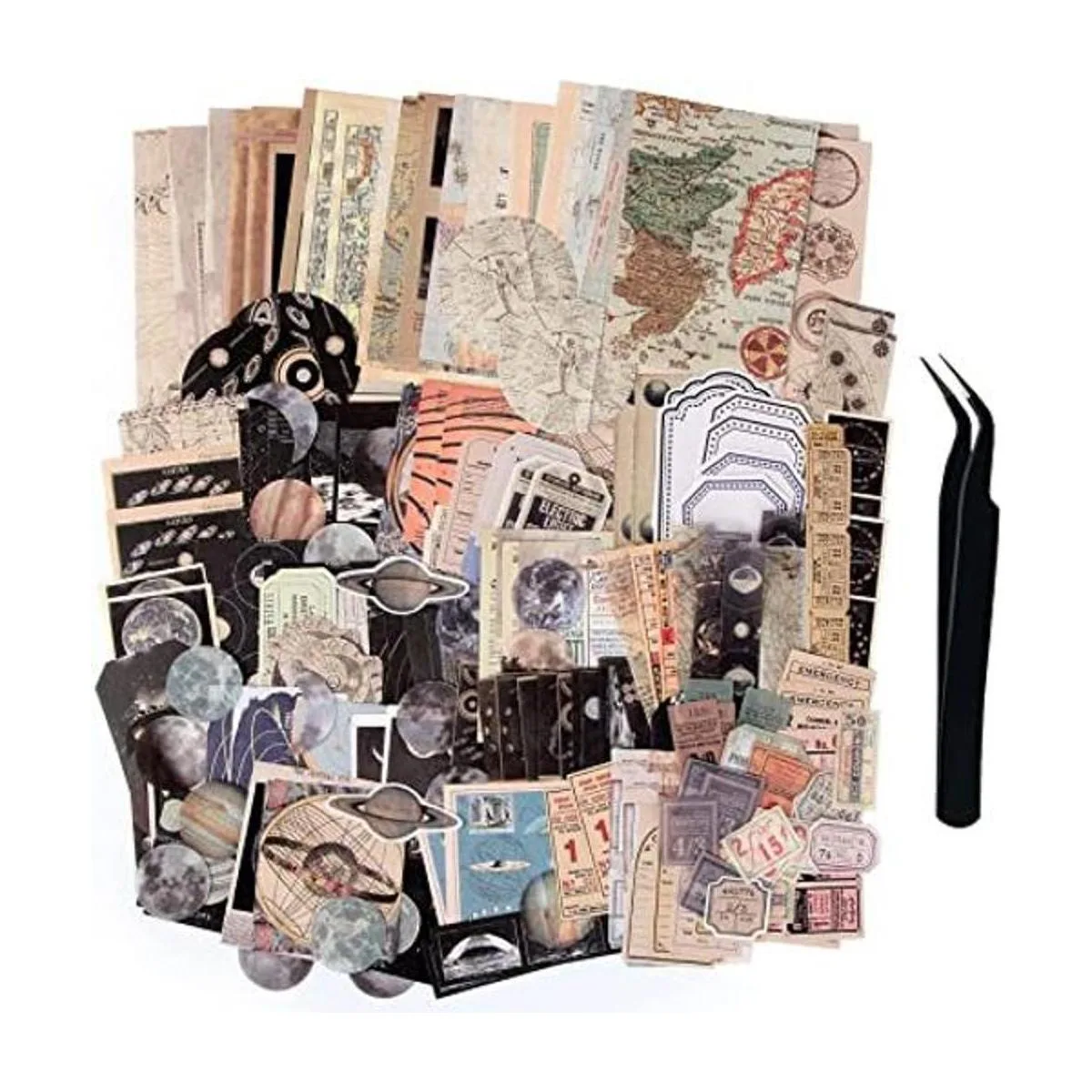 200 calcomanías estéticas para diario, calcomanías vintage para álbumes de recortes, suministros de diario, calcomanías de luna espacial, suministros de álbumes de recortes, papel para diarios de bala de bruja, kit de suministros de diario de basura