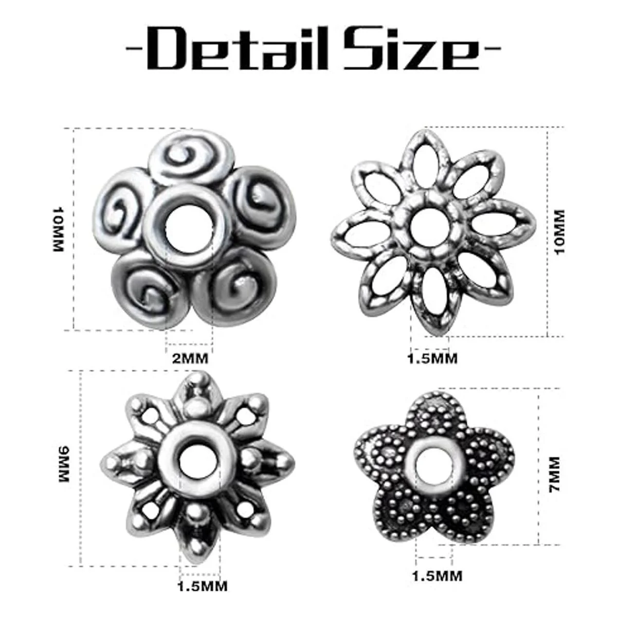 Tapas de cuentas de flor: las tapas de cuentas están diseñadas en 4 tipos de formas de flores, elegantes y delicadas, que pueden atrapar las miradas de otros a las encantadoras cuentas en tu diseño de joyería.