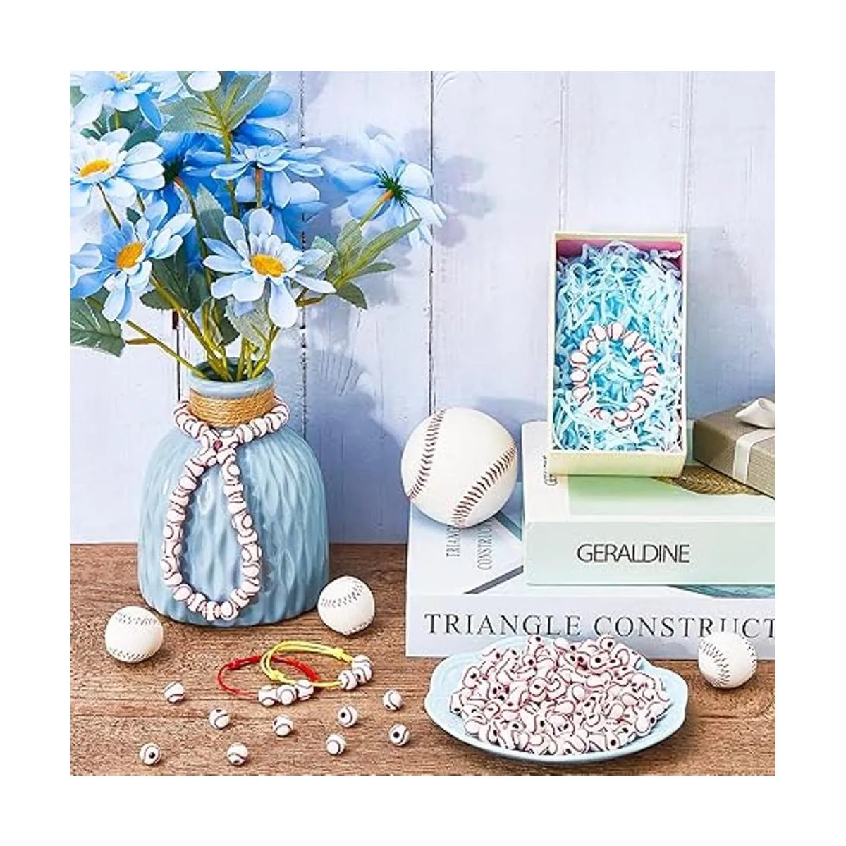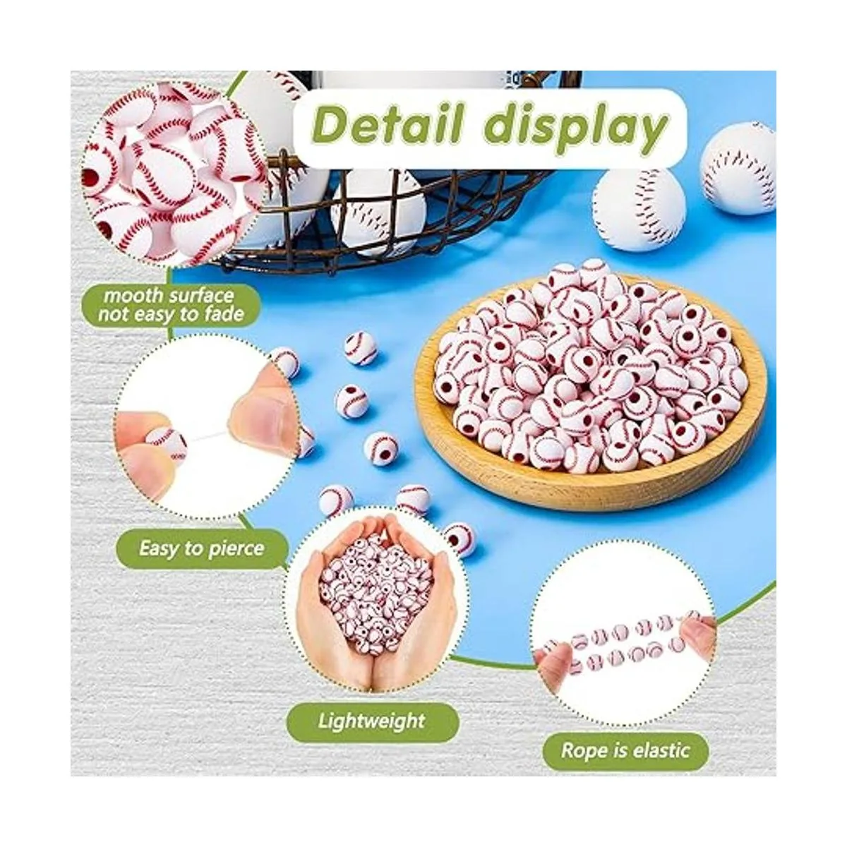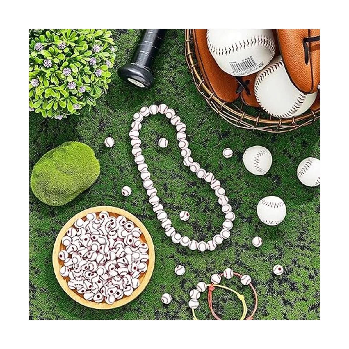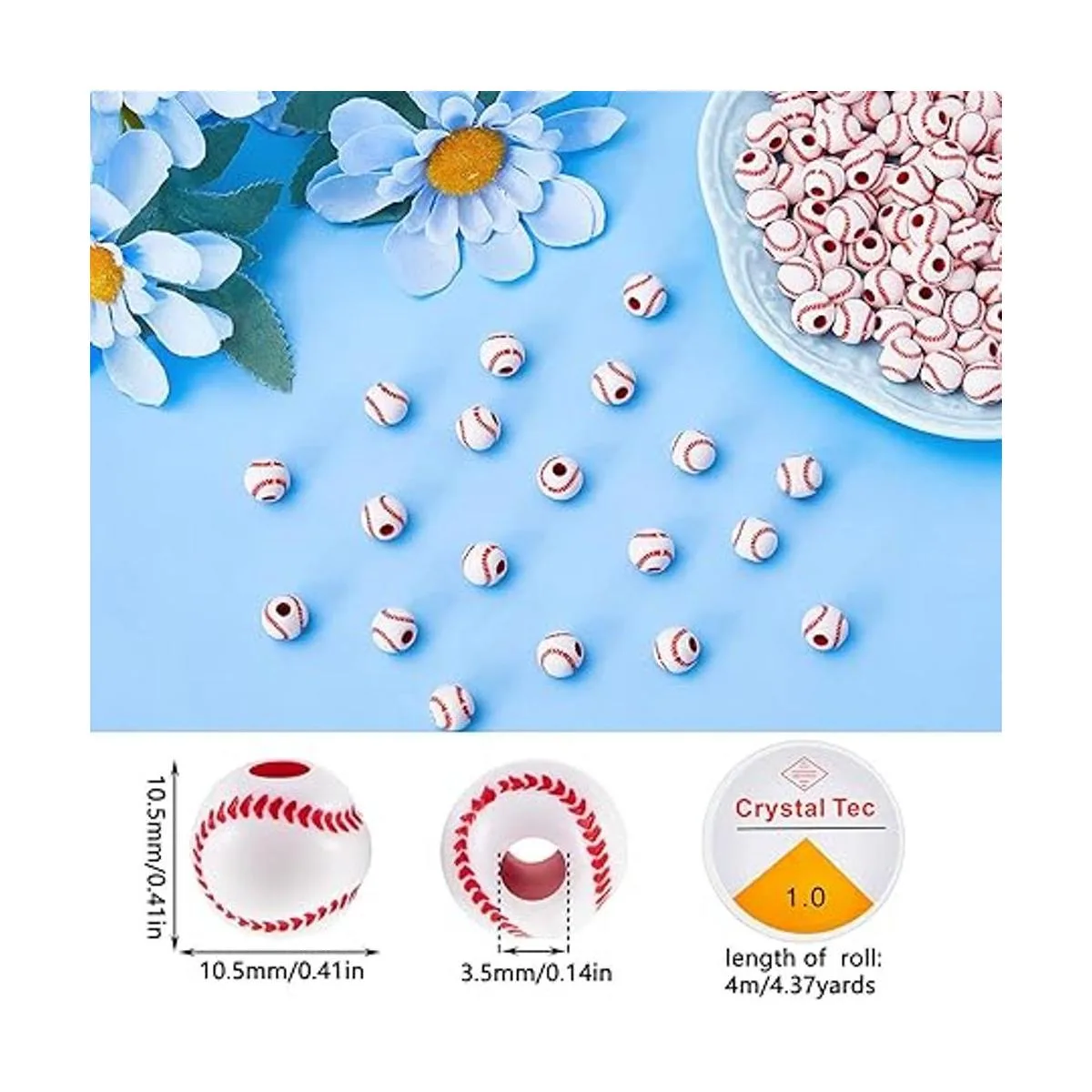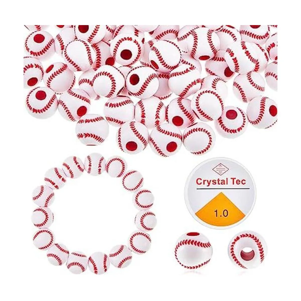Fiable de usar: nuestras cuentas de béisbol están hechas principalmente de materiales acrílicos de calidad, después de una exquisita artesanía y elaborados, exquisitos y sólidos, patrones claros, peso ligero, cómodo al tacto, se puede aplicar durante mucho tiempo; línea de cristal hecha de resina, flexible, no es fácil de romper, puede servirte durante mucho tiempo