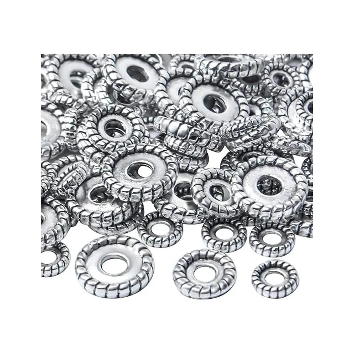 200 cuentas espaciadoras de aleación de plata antigua tibetana con espaciadores redondos, espaciadores de cuentas con una caja para hacer manualidades y manualidades, forma de engranaje.