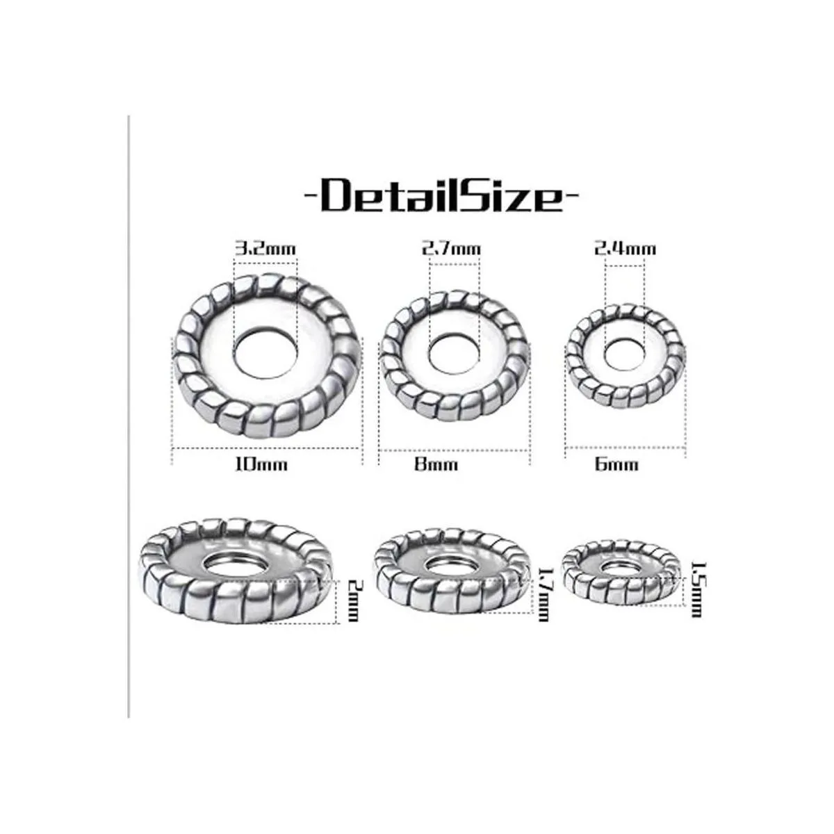 Tamaño adecuado: las cuentas espaciadoras son de 6 a 0.394 in de diámetro, 1,5 a 0.079 in de grosor, agujero de 2,4 a 0.126 in, puedes pasar fácilmente la cuerda y adaptarse a la mayoría de los cables, diferentes tamaños serán adecuados para aplicar en varios proyectos de bricolaje.