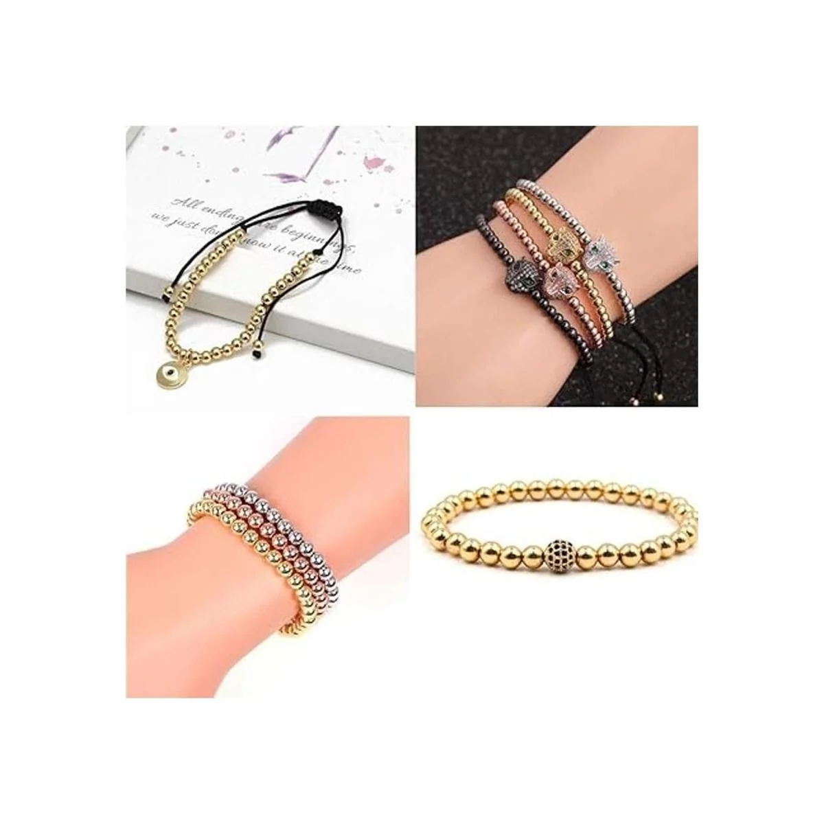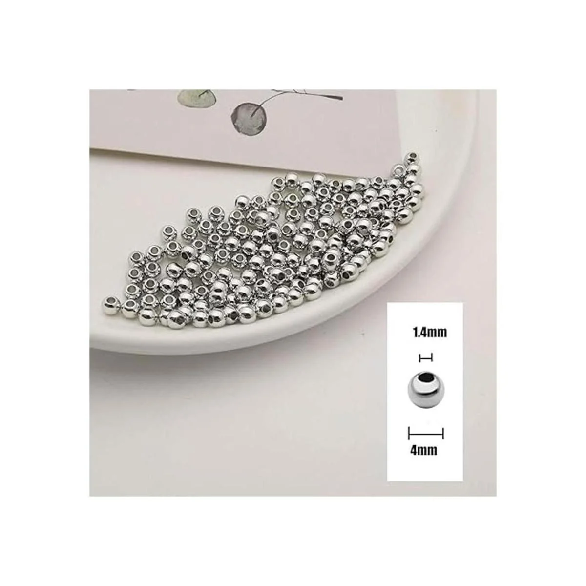 200 cuentas espaciadoras redondas blancas K lisas de latón chapado en K blanco, resistente al deslustre, sin costuras, cuentas de conector sueltas para hacer pulseras de bricolaje 0.16 pulgadas blanco K