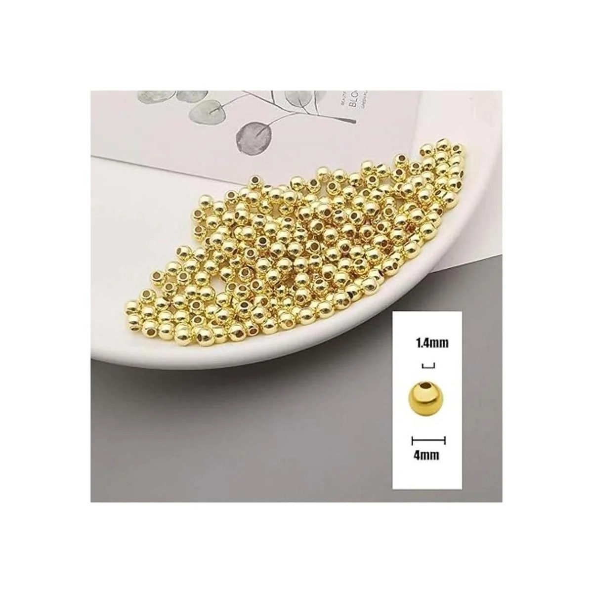 200 cuentas espaciadoras redondas lisas doradas, latón chapado en oro, resistente al deslustre, sin costuras, cuentas de conector sueltas para hacer pulseras y joyas 0.157 in0.16 pulgadas dorado