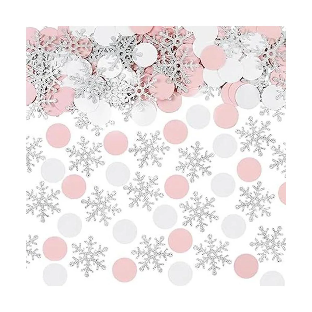200 decoraciones de confeti de copos de nieve para decoraciones de invierno del país de las maravillas de invierno, confeti de copo de nieve plateado blanco rosa con puntos circulares para decoración de mesa de invierno, Navidad, cumpleaños, vacaciones,