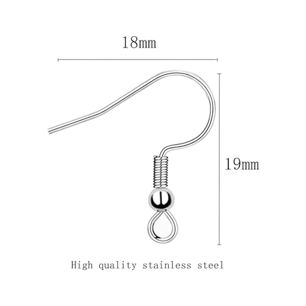 200 ganchos de acero inoxidable con cuentas coloridas para aretes, ganchos de pez, ganchos de alambre francés, estilo bobina y bola, sin níquel, para hacer joyas, Acero inoxidable, No es una piedra preciosa