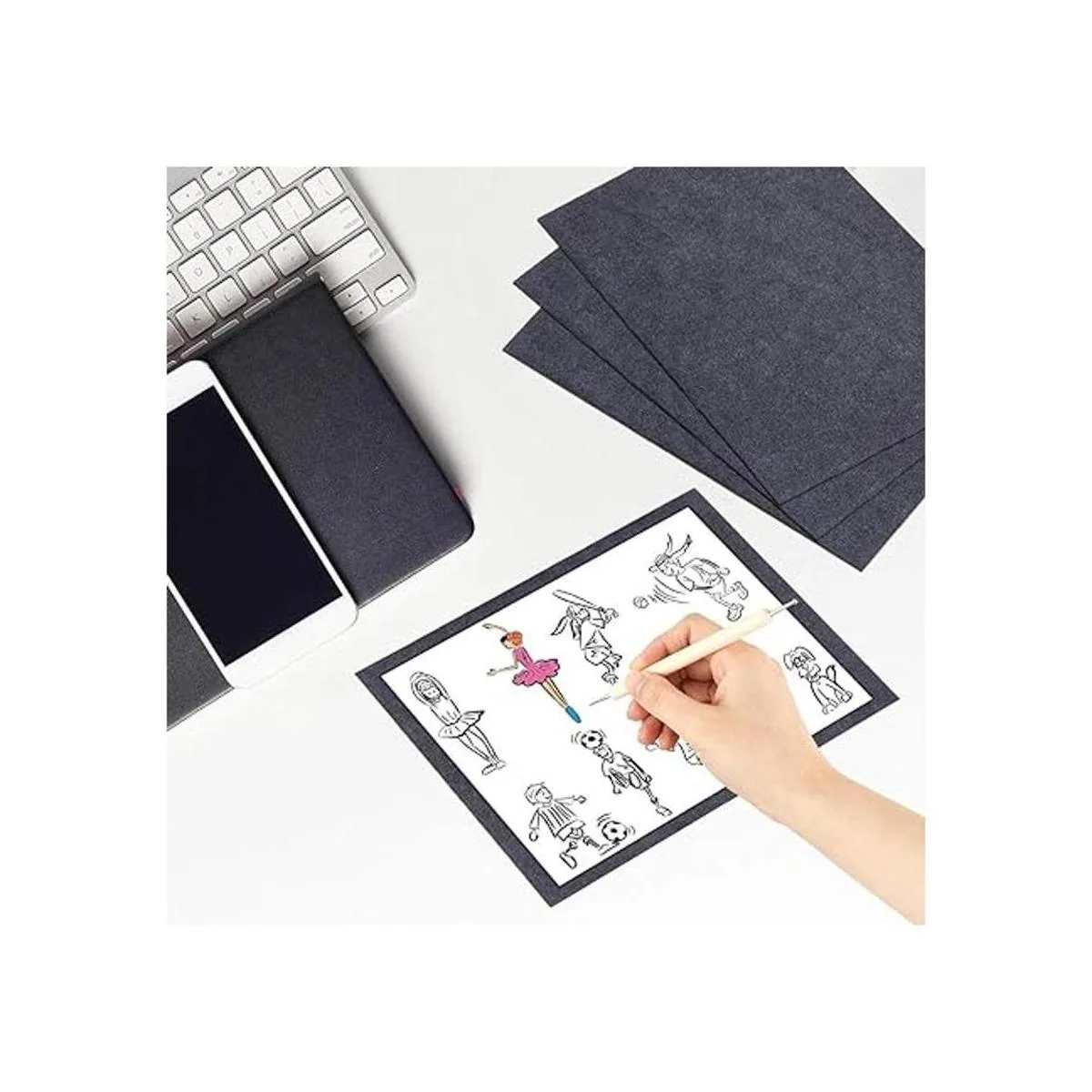 Incluye: contiene 200 hojas de papel de carbono de 11.7 x 8.3 pulgadas y 5 herramientas de punteado de doble extremo de 5.2 pulgadas de largo, el diámetro de la bola superior varía de 1 a 0.118 in; casi satisfacen todas tus necesidades durante el uso
