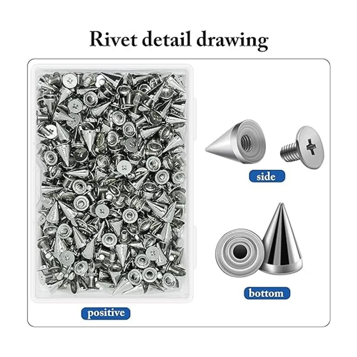 Ampliamente utilizado: estos picos de cono son adecuados para manualidades, como artículos fijos o decorativos. Por ejemplo: cinturón, bolso, ropa, clavos, zapatos, collares de perro, etc.