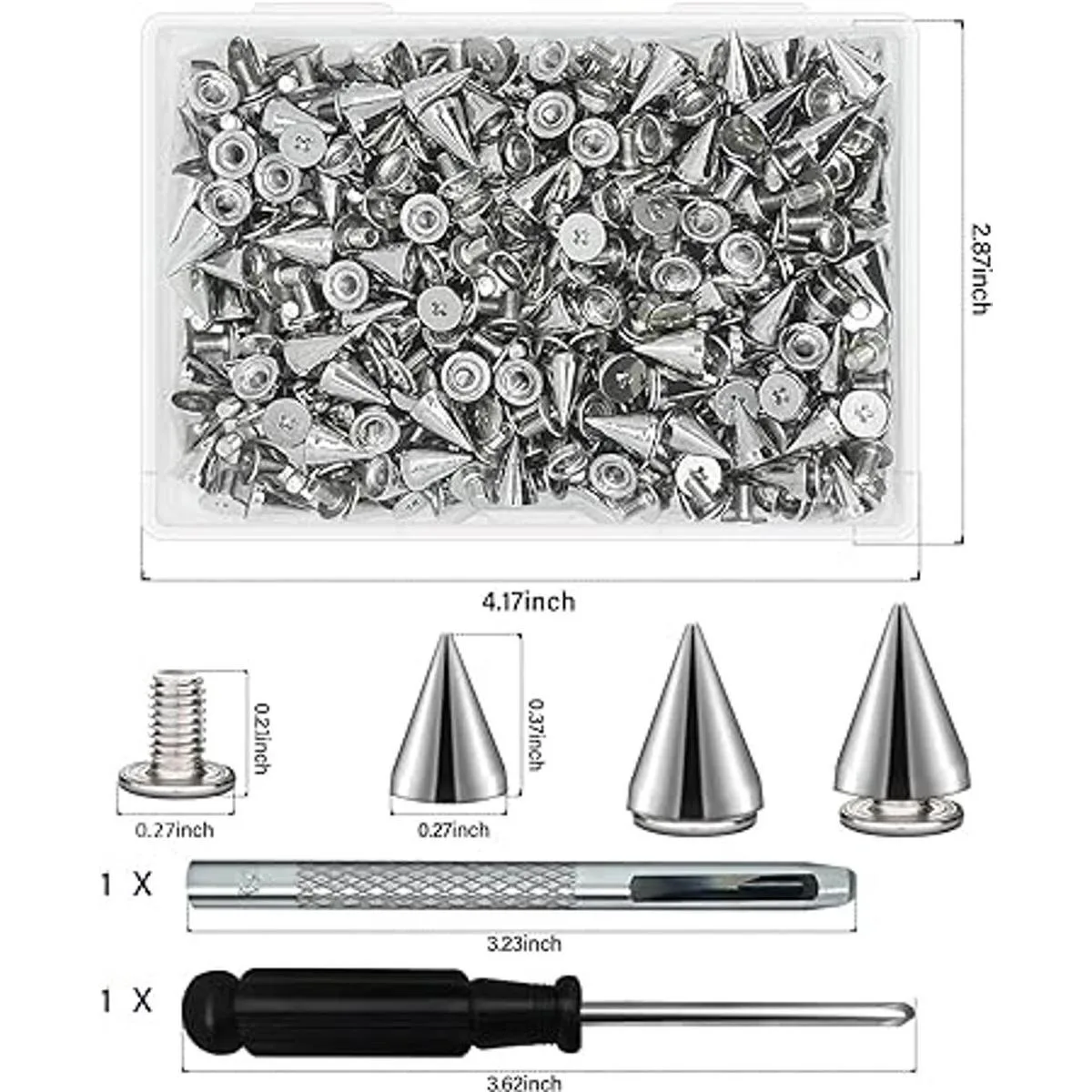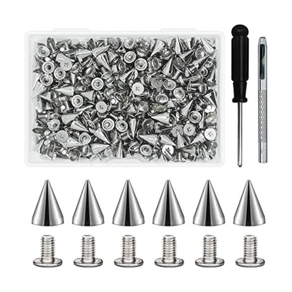 Recibirás: 200 juegos de puntas de cono de metal con tornillo. Tamaño: 0.276 x 0.374 in