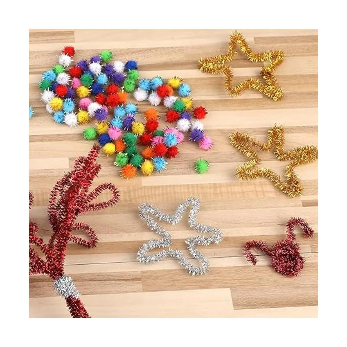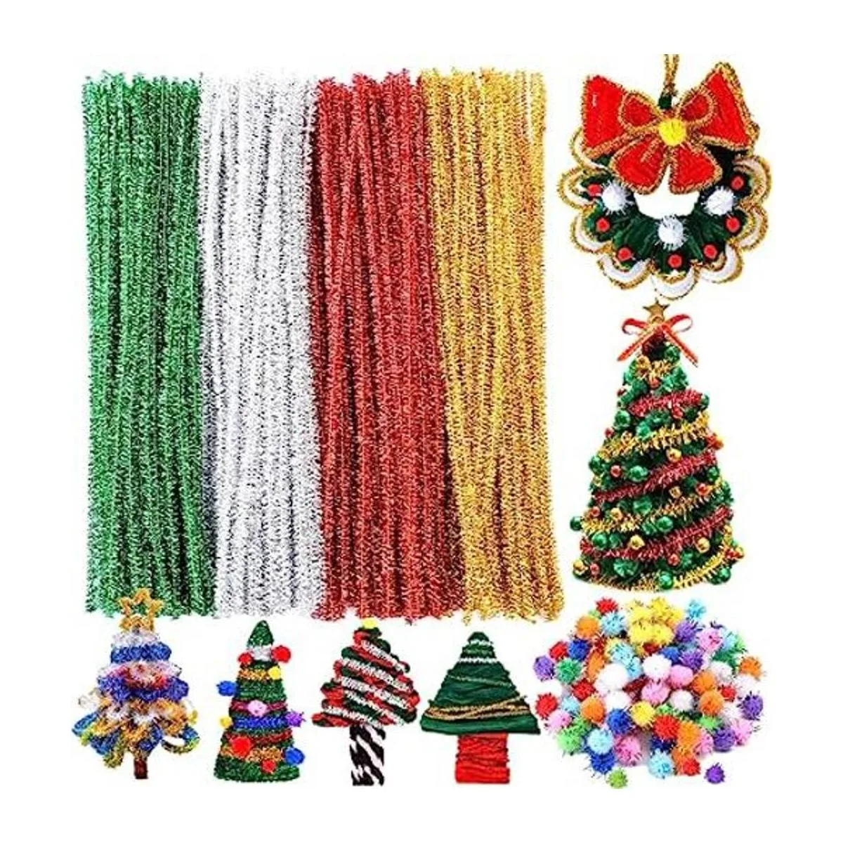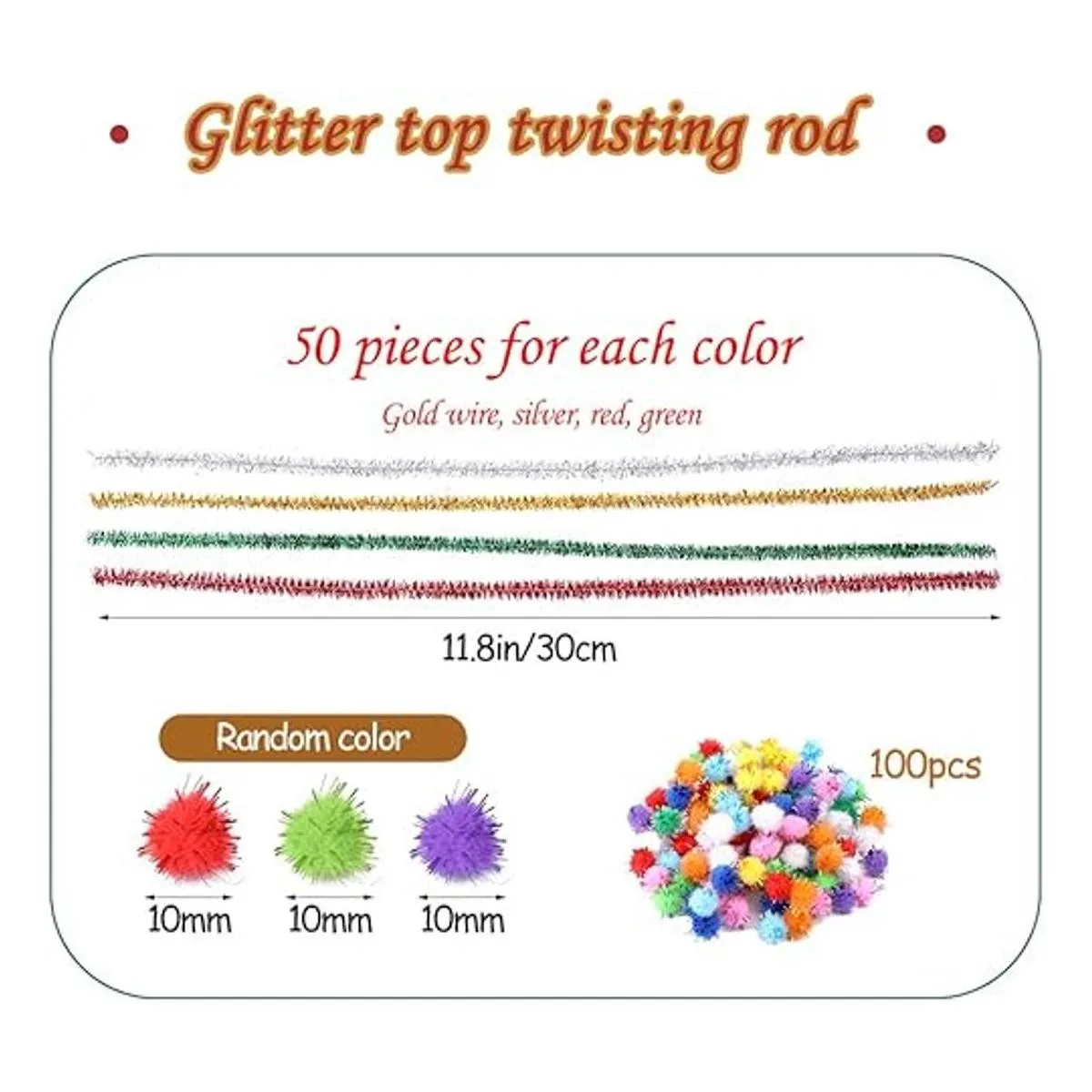 200 limpiadores de tuberías, limpiadores de tuberías con purpurina de Navidad, limpiadores de tuberías con 100 pompones, limpiadores de tuberías para manualidades creativas de decoración de Navidad, suministros de arte y manualidades