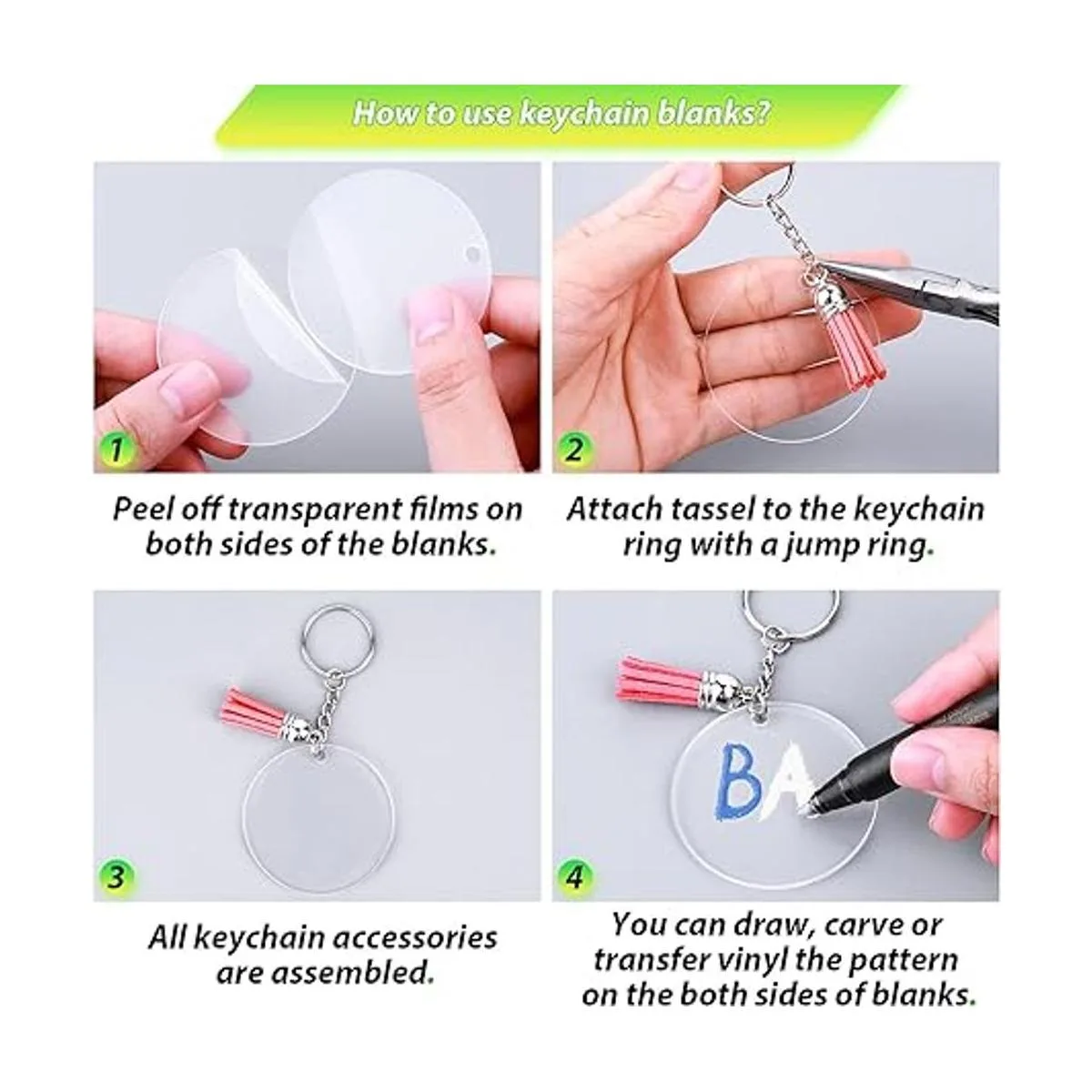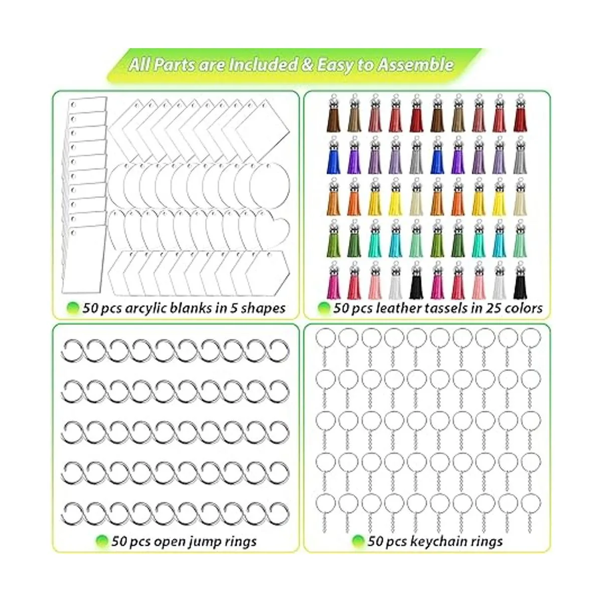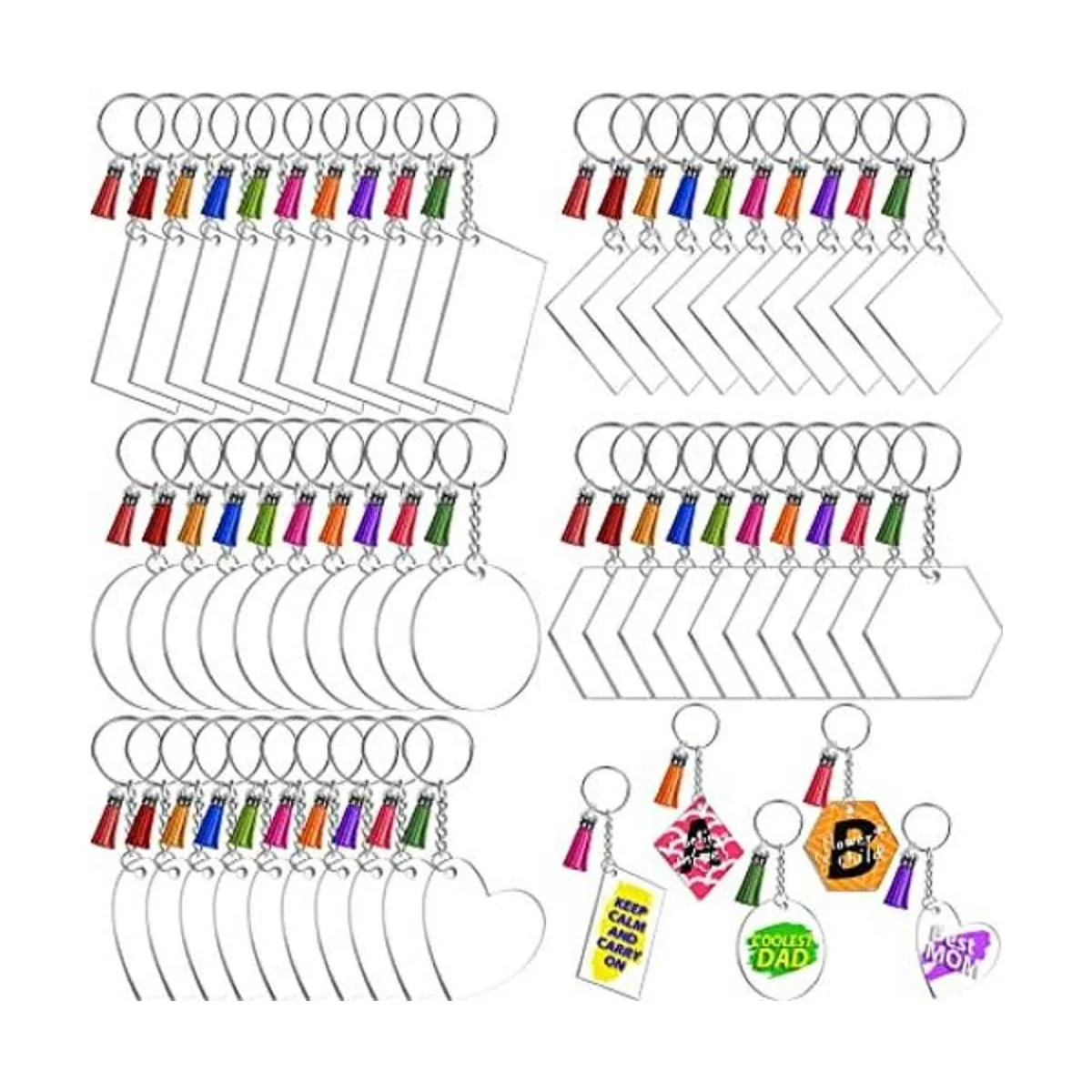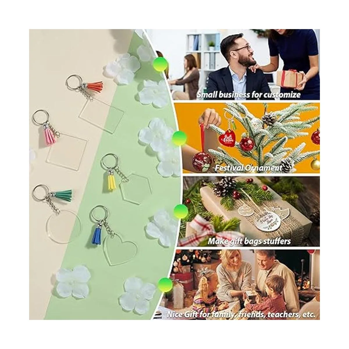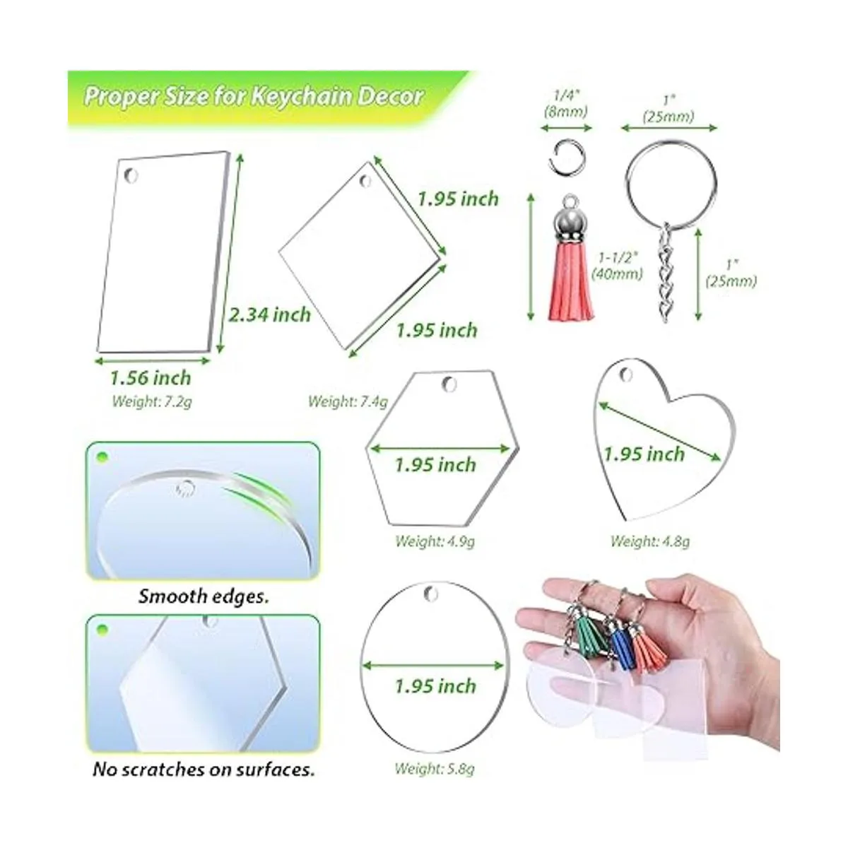 200 llaveros en blanco para vinilo, llaveros acrílicos en blanco a granel con 5 formas de disco acrílico transparente con borla de cuero, llaveros de anillo de salto para manualidades, adorno de grabado, pintura