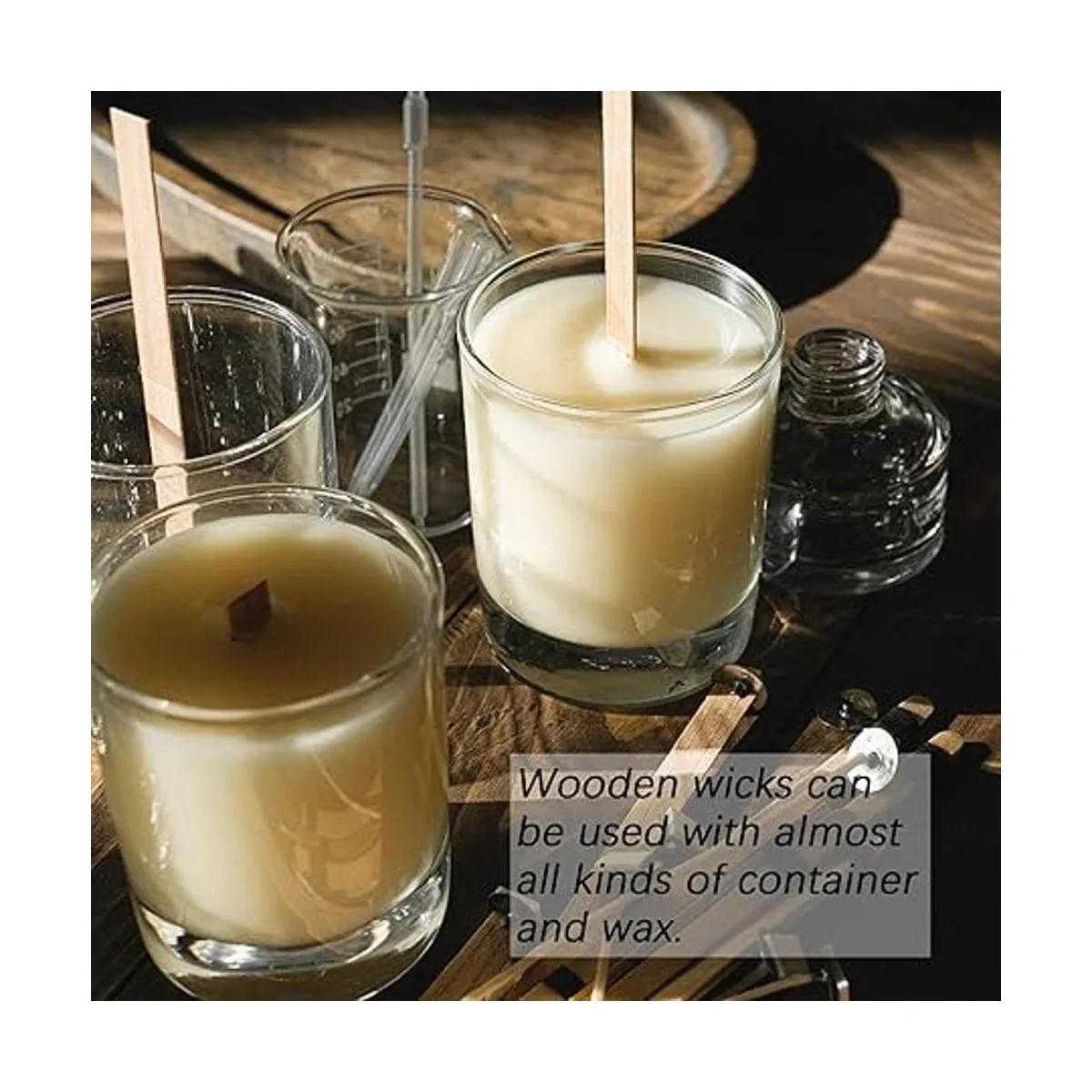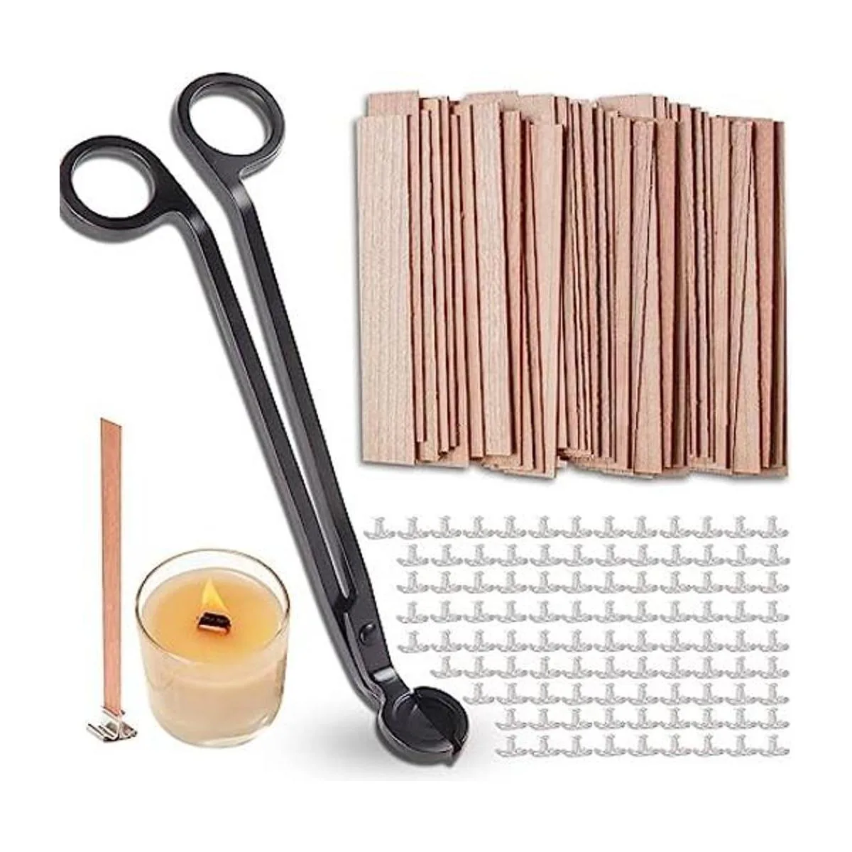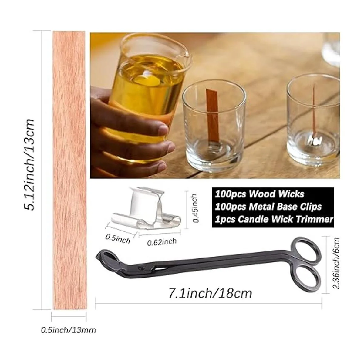 200 mechas de madera para velas, mechas de madera de 5.1 x 0.5 pulgadas, mechas de madera natural sin humo para velas con recortador de mecha de vela y soporte de hierro para hacer velas de bricolaje juego de 100