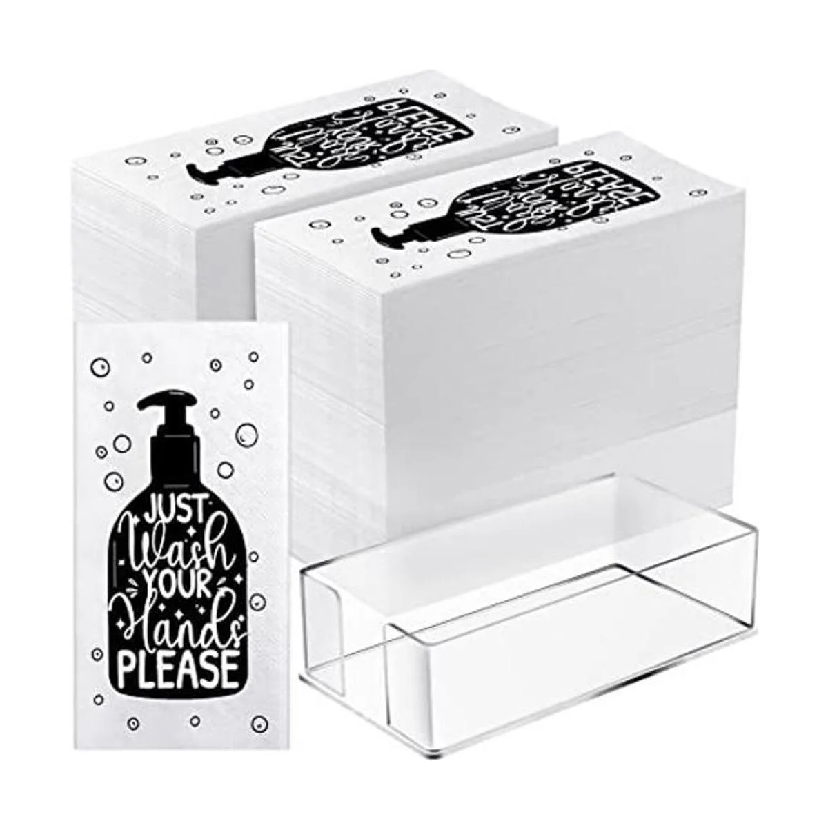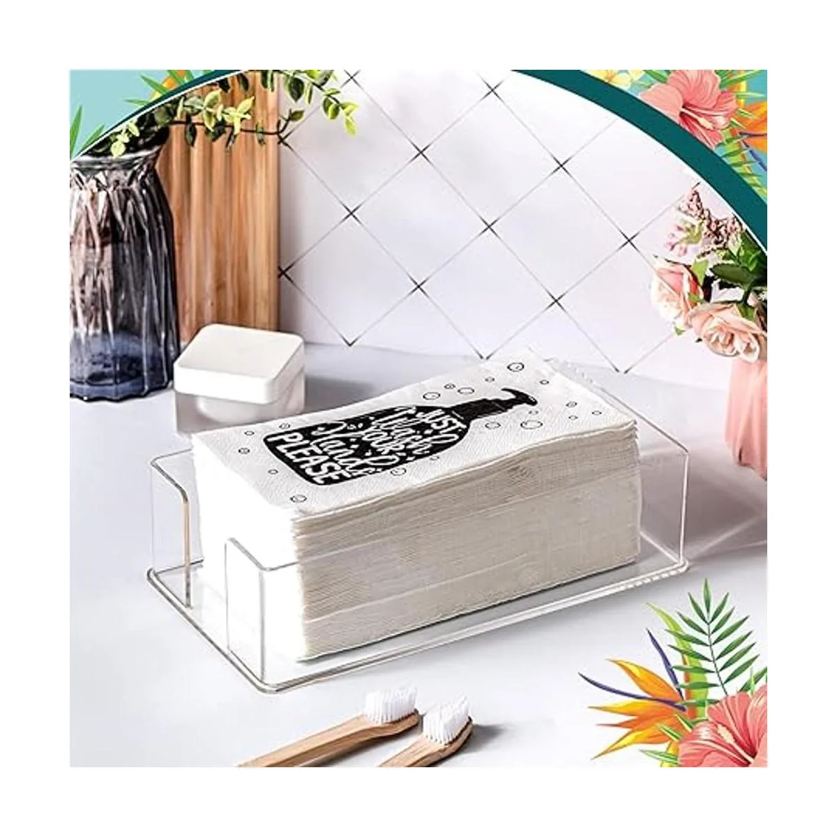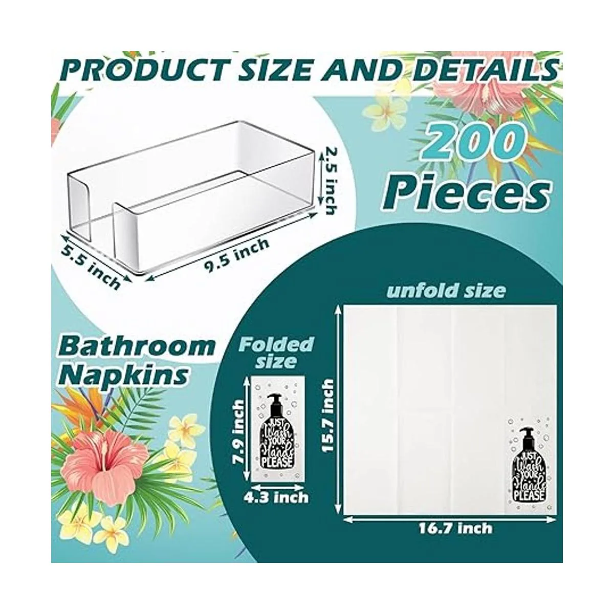 200 paquetes de servilletas desechables y servilleteros de acrílico, toallas de mano desechables de papel transparente para invitados, servilletero, toallero de mano para baño, sala de polvo, habitación de invitados, toalla decorativa
