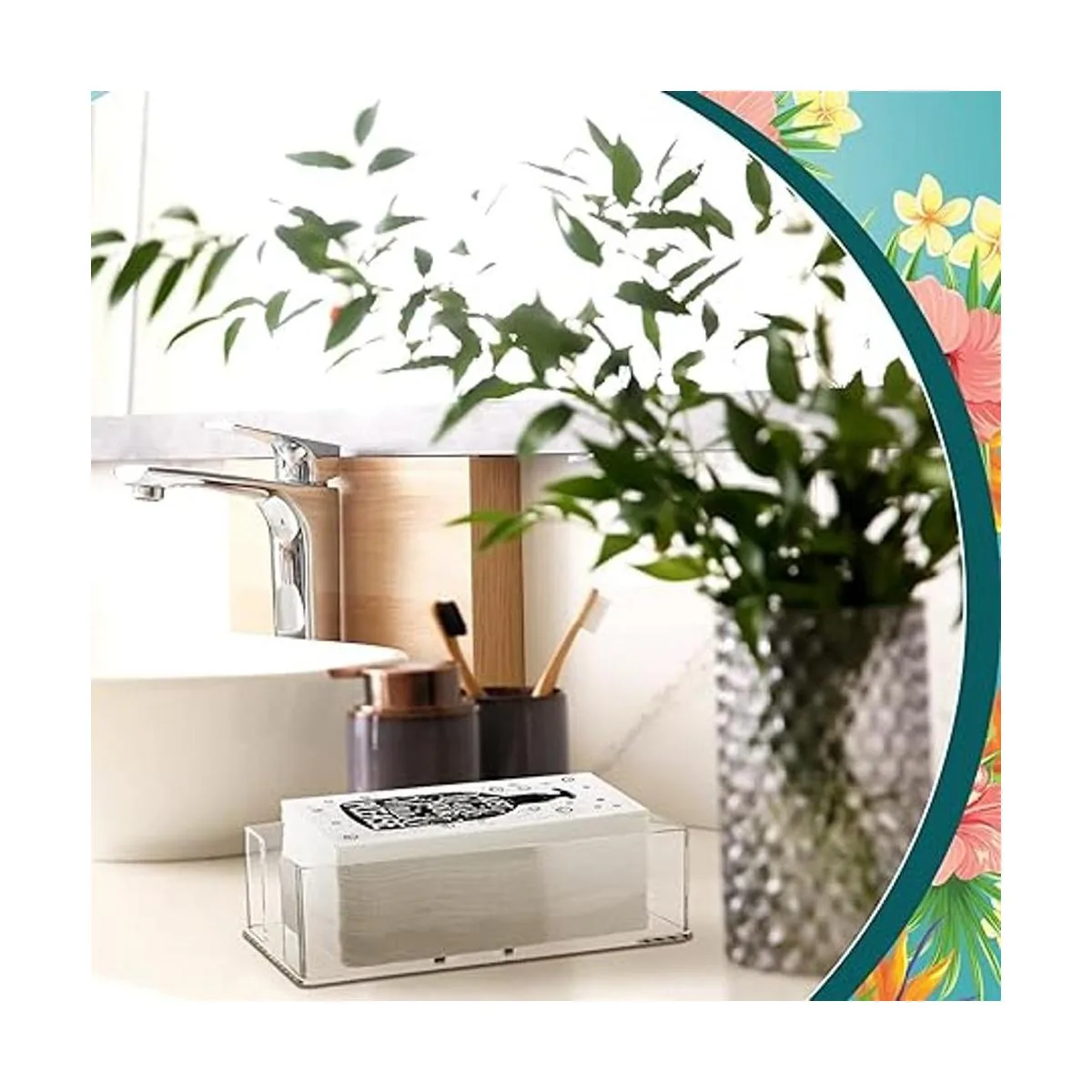 Fácil de tomar y rellenar: fabricado con material acrílico de calidad, el soporte para toallas de papel de baño cuenta con una abertura en forma de U en un lado, lo que te permite sacar fácilmente una servilleta; además, el estante transparente te permite comprobar fácilmente el número de servilletas y llenarlas a tiempo