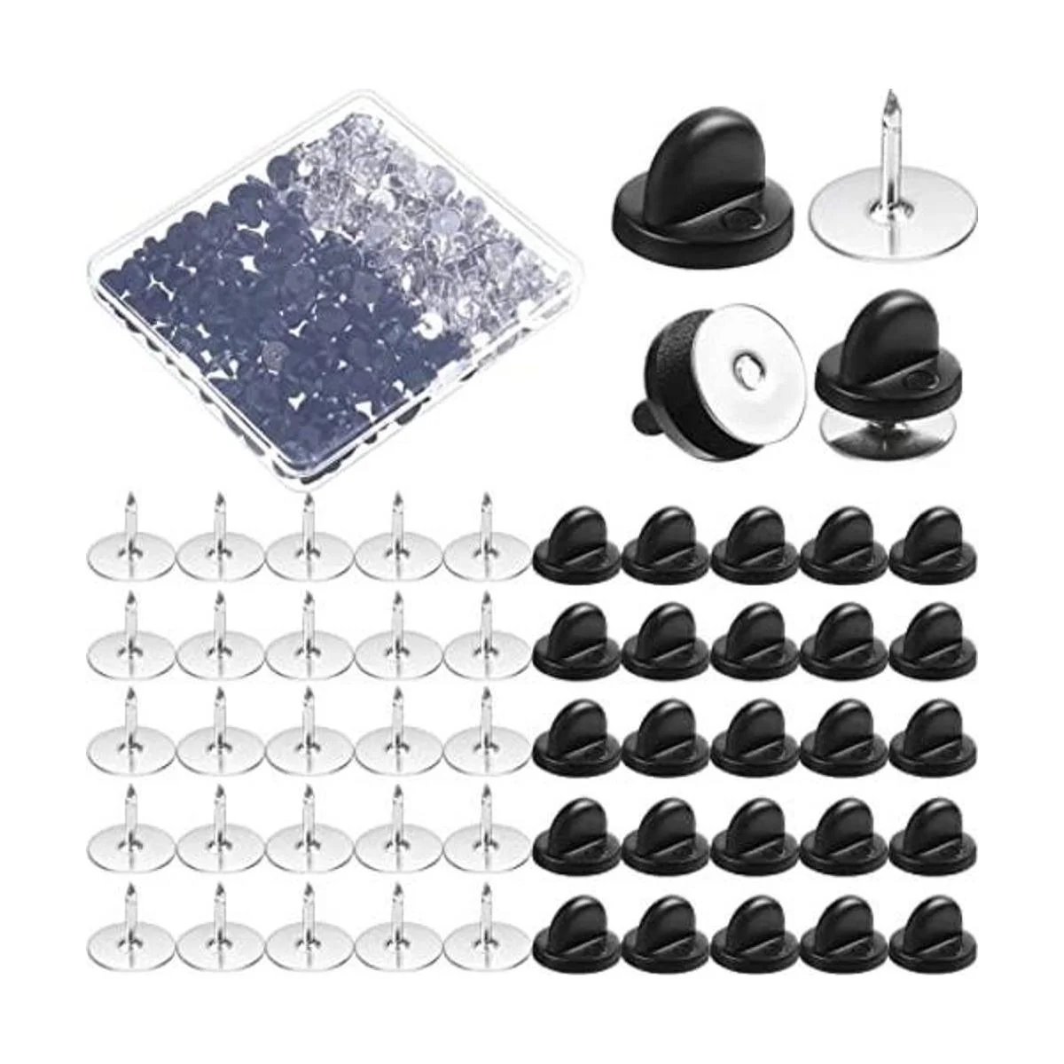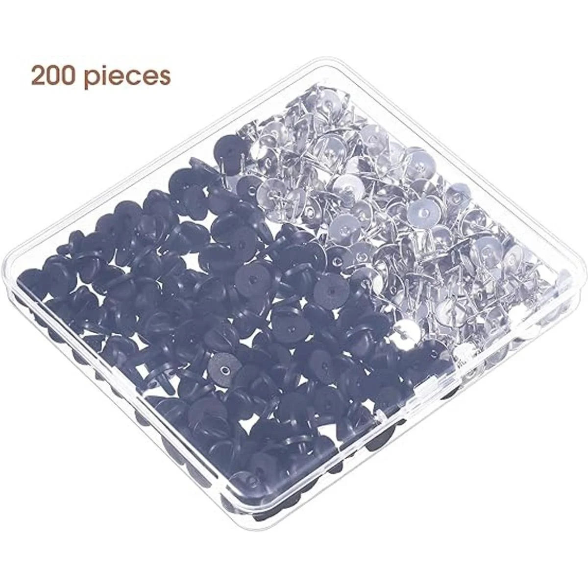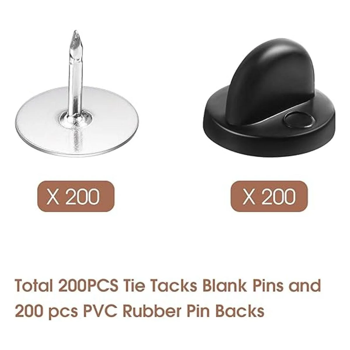 200 pares de tachuelas de corbata en blanco de mariposa de embrague de corbata de plástico para pasadores de solapa negro