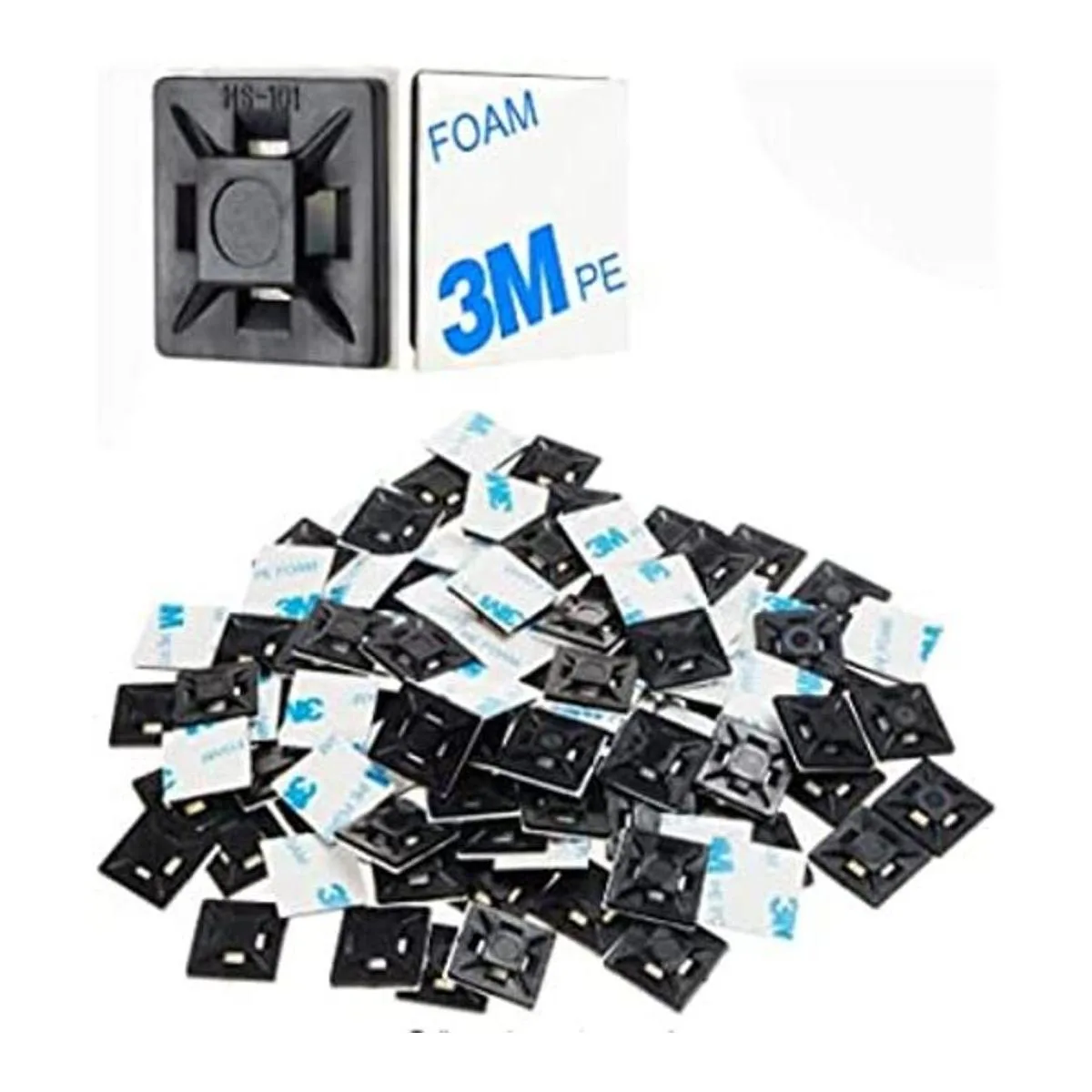 200 piezas de 12 pulgada negro 3M pegamento trasero autoadhesivo para cables con cierre de cremallera, soportes de clips de cable, anclajes de gestión, soportes organizadores cuadrados HS100