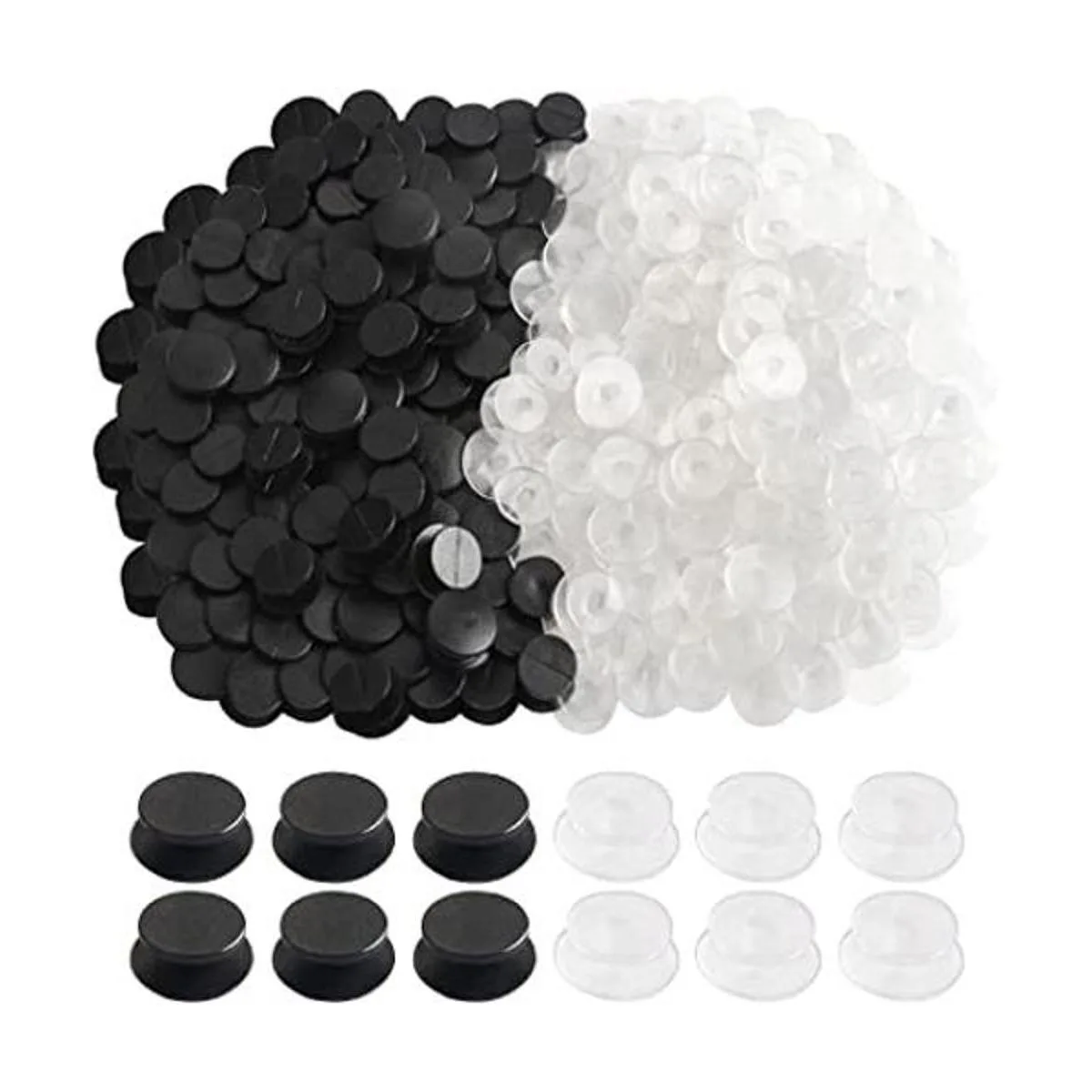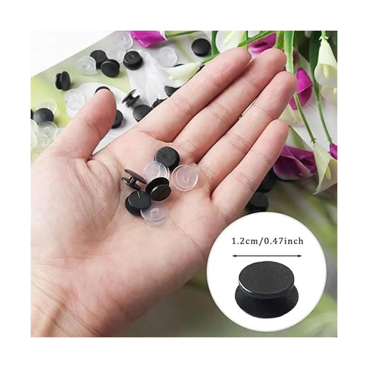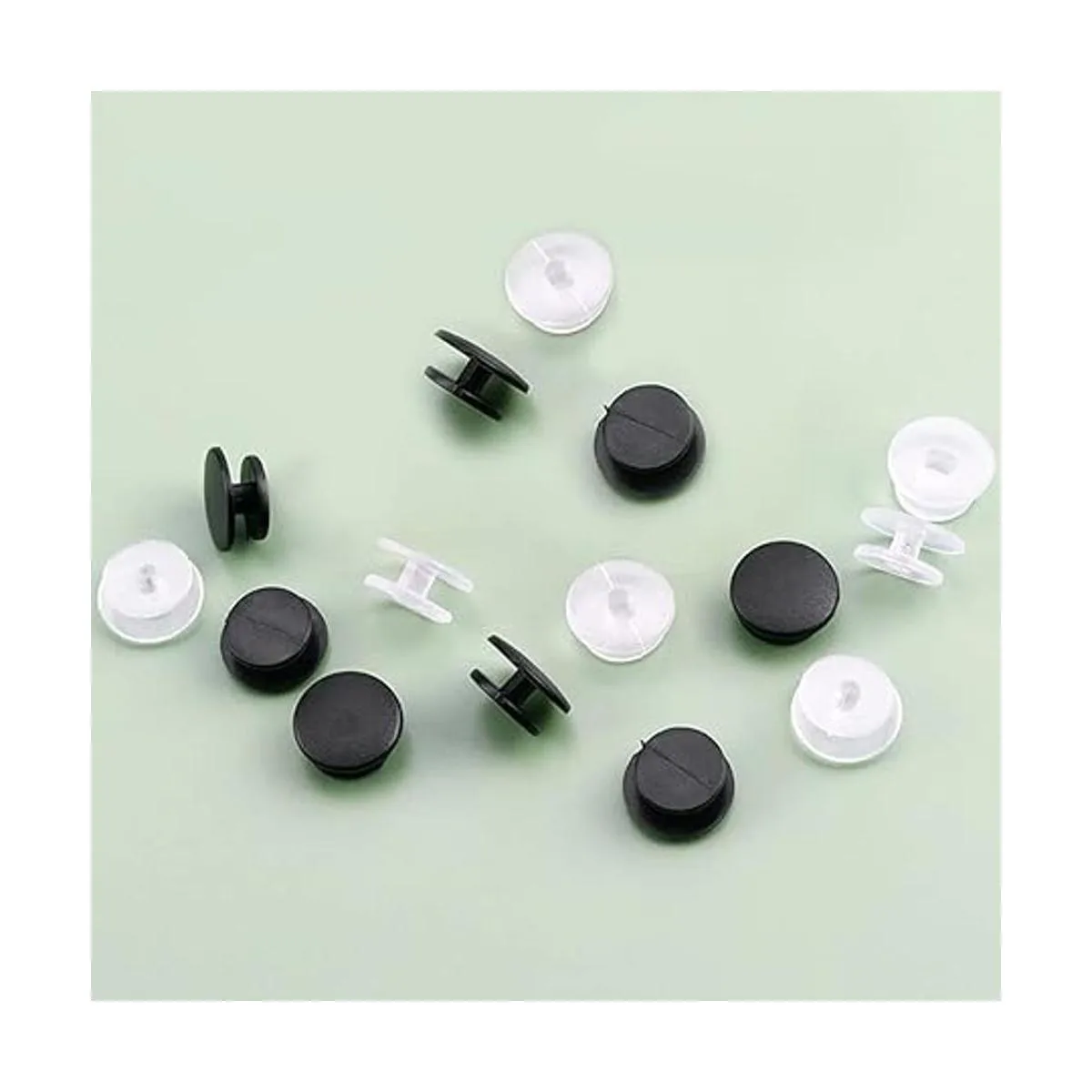 El paquete incluye: Recibirás 200 botones de plástico, incluyendo 100 botones negros y 100 botones transparentes el diámetro inferior es de 0.5 in, que es suficiente para satisfacer tus necesidades diarias.