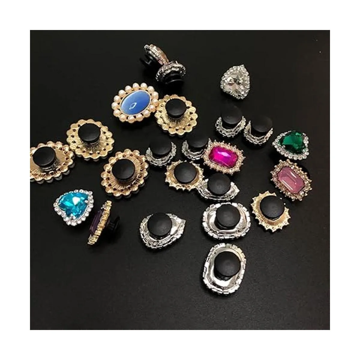Fácil de usar: simplemente aplica pegamento en la parte posterior del adorno que desees y luego colócalo en la superficie plana del botón, mantenlo presionado durante un tiempo, se puede completar una hebilla de zapato de bricolaje.
