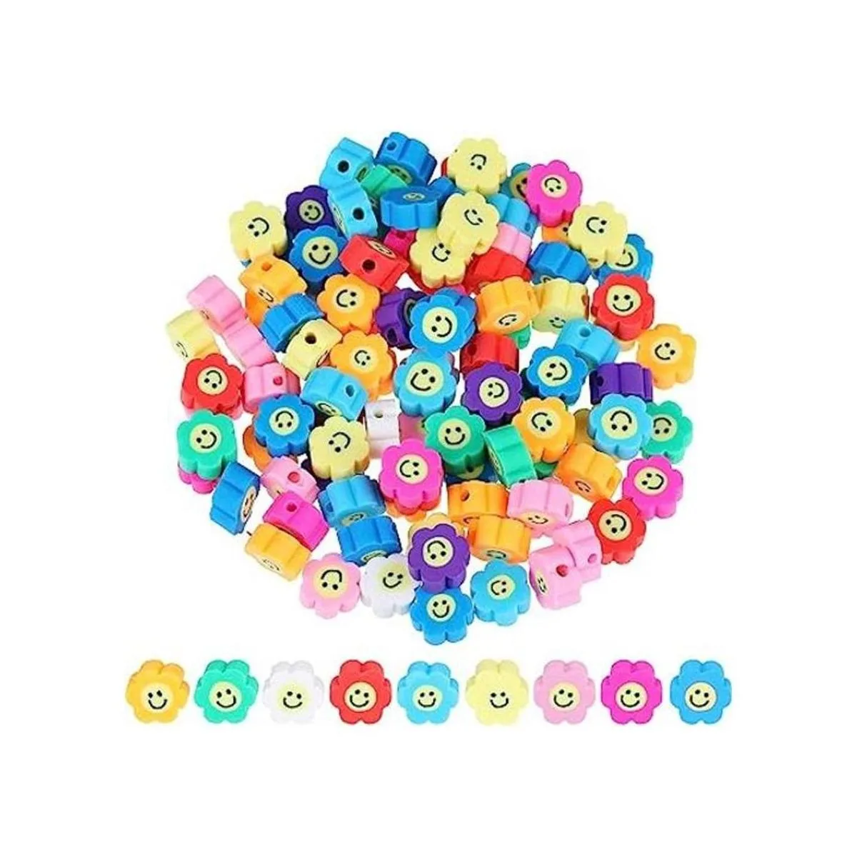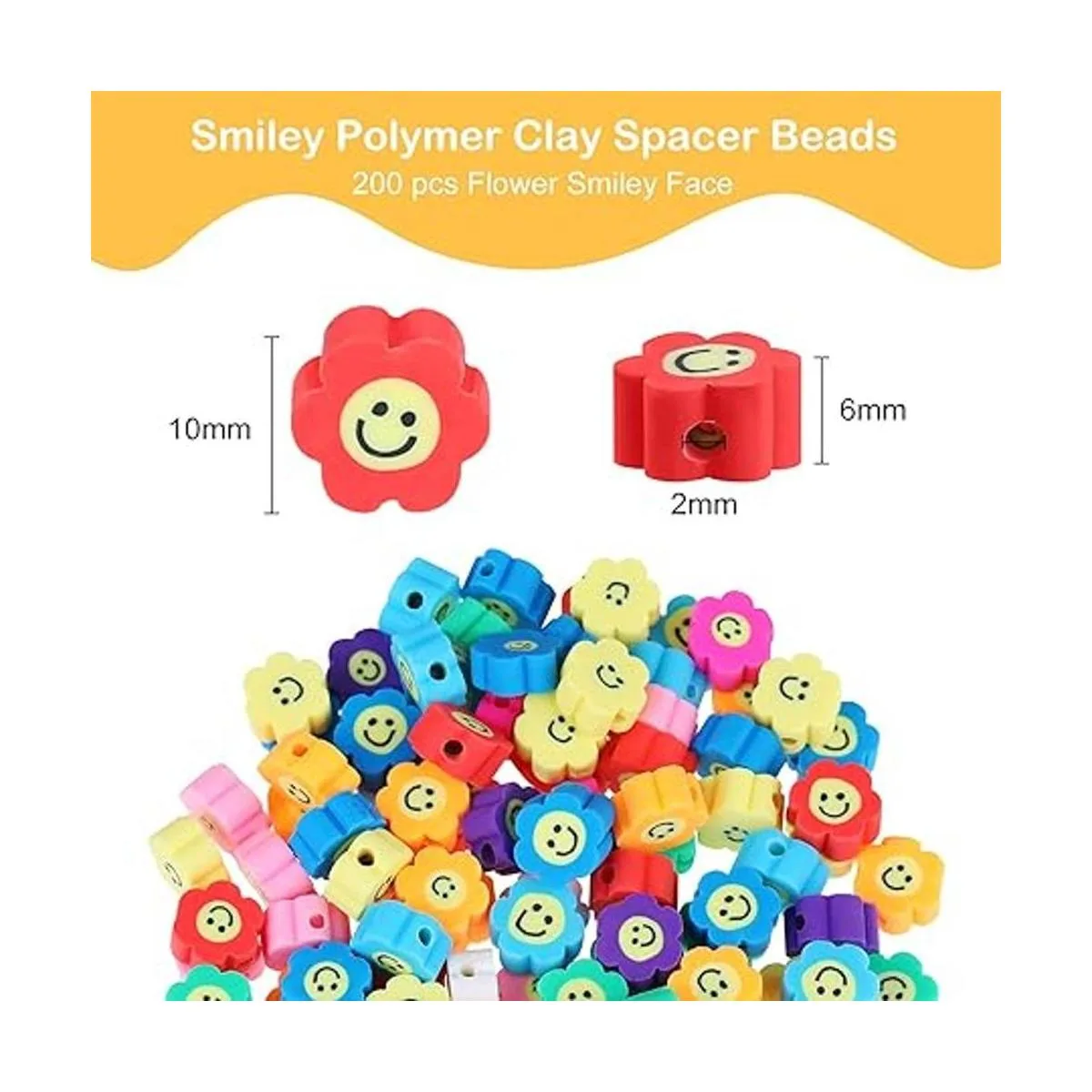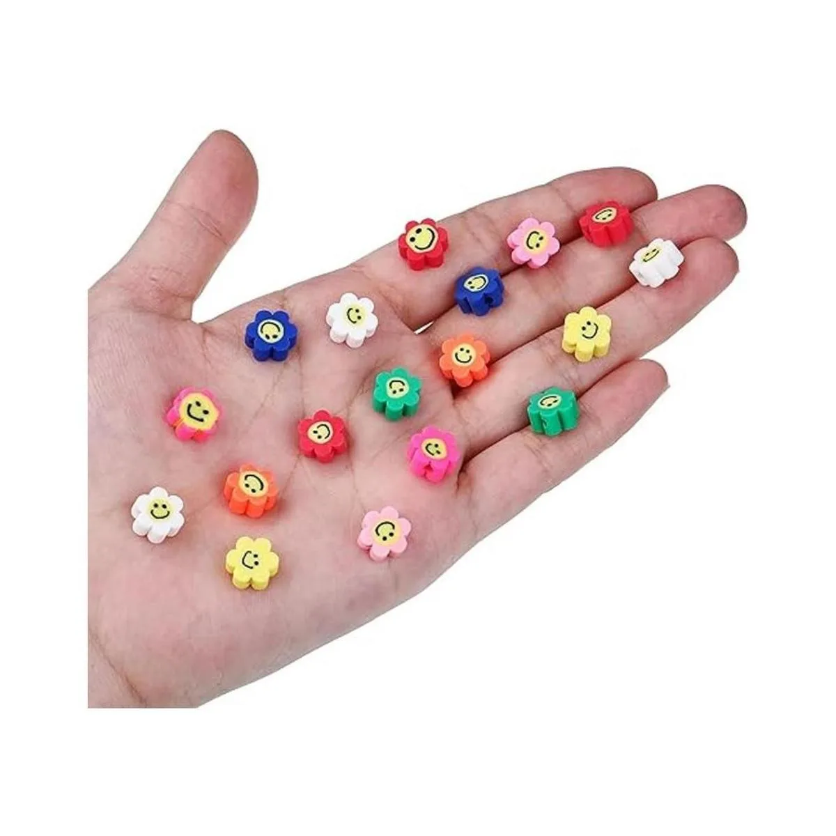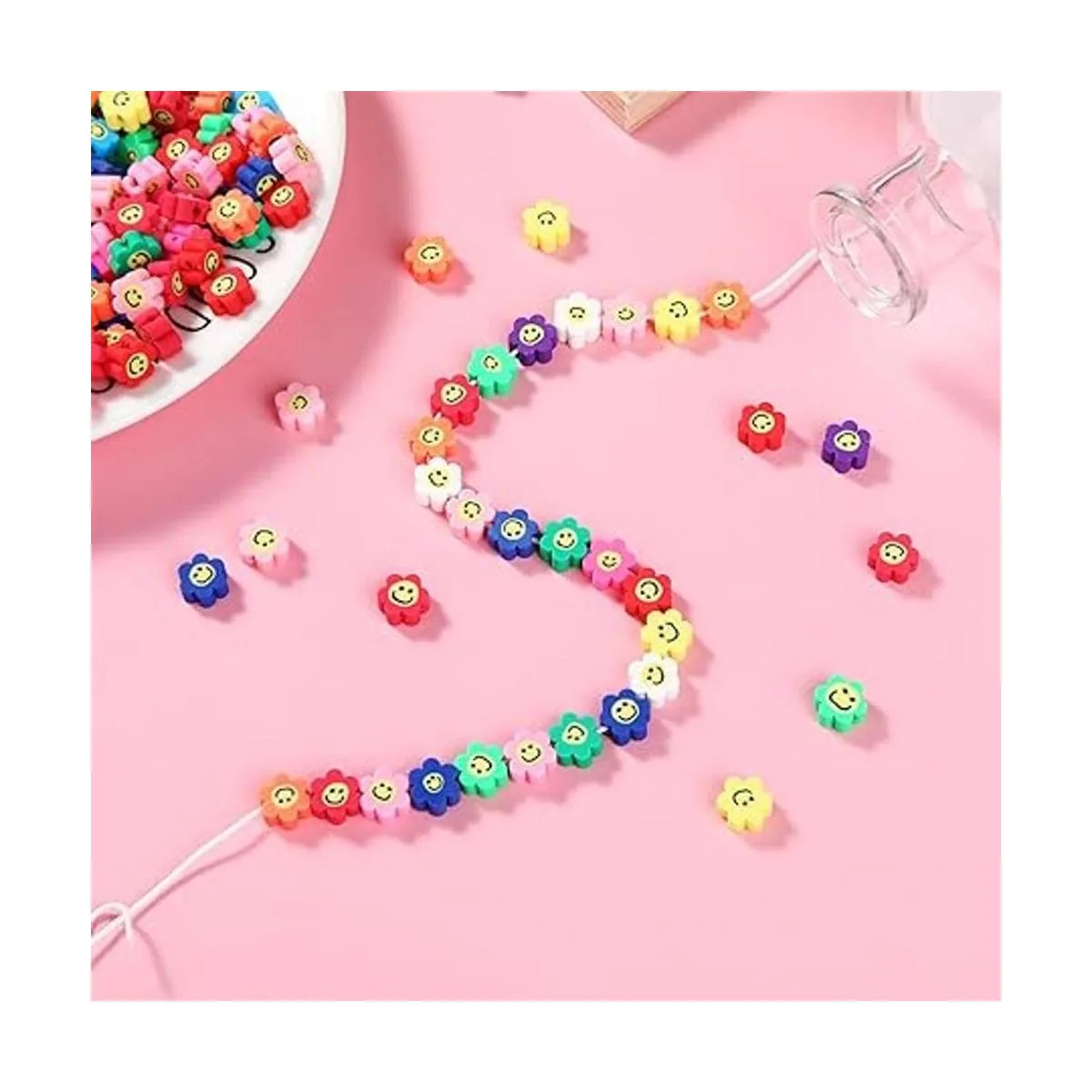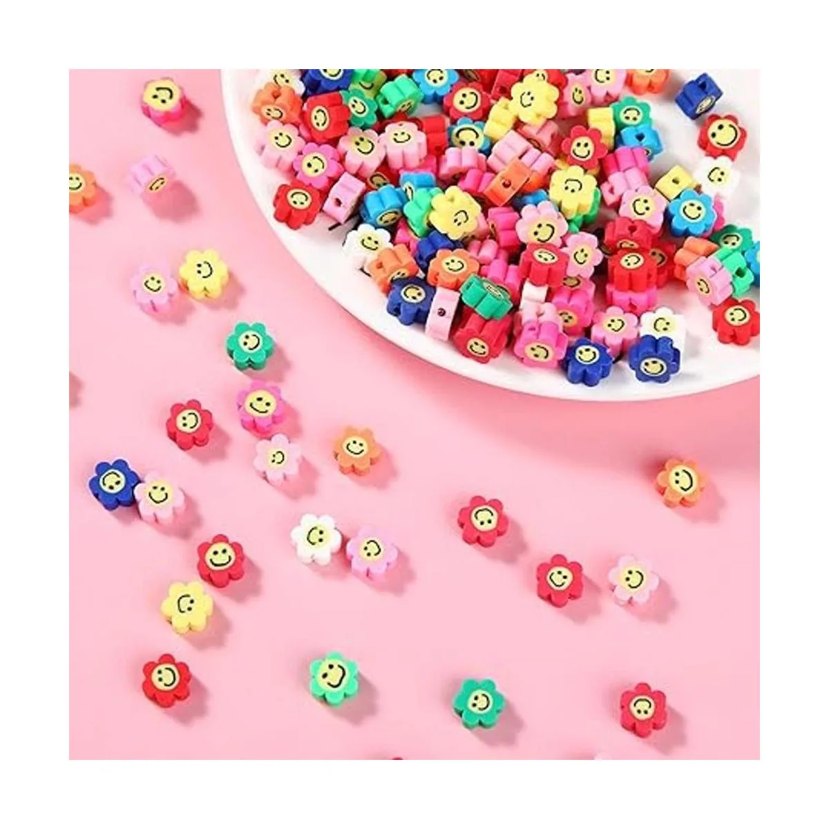 200 piezas de forma de flor de arcilla polimérica cuentas de la cara de la sonrisa de la flor DIY cuentas de la cara de la flor de la cara de la sonrisa de la flor de colores cuentas de la cara feliz para la joyería pulsera pendiente collar DIY Craft